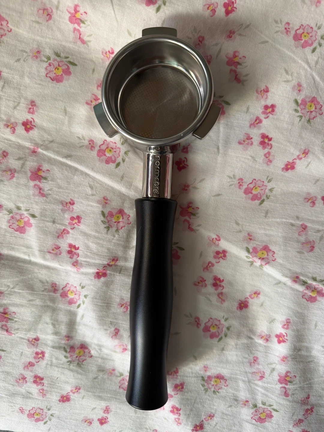 This is an espresso portafilter by the brand normcore It's made of metal and has a standard filter basket. It's ready for your espresso machine!