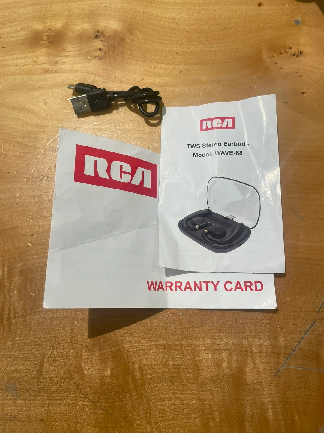 A barely used RCA Wave-68 True Wireless Earbuds. Engineered for premium sound quality, these earbuds deliver immersive audio with 20 hours of long playtime. Whether you're commuting, exercising, or relaxing at home, the RCA Wave-68 allows you to indulge in your favorite music without interruption. Comes with USB charger, manual, and 1 year warranty card.