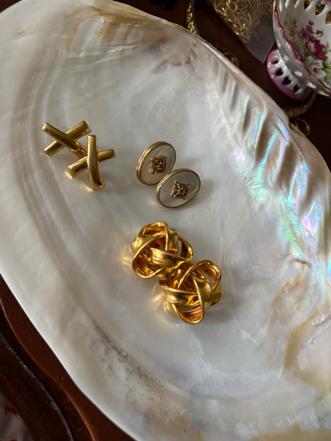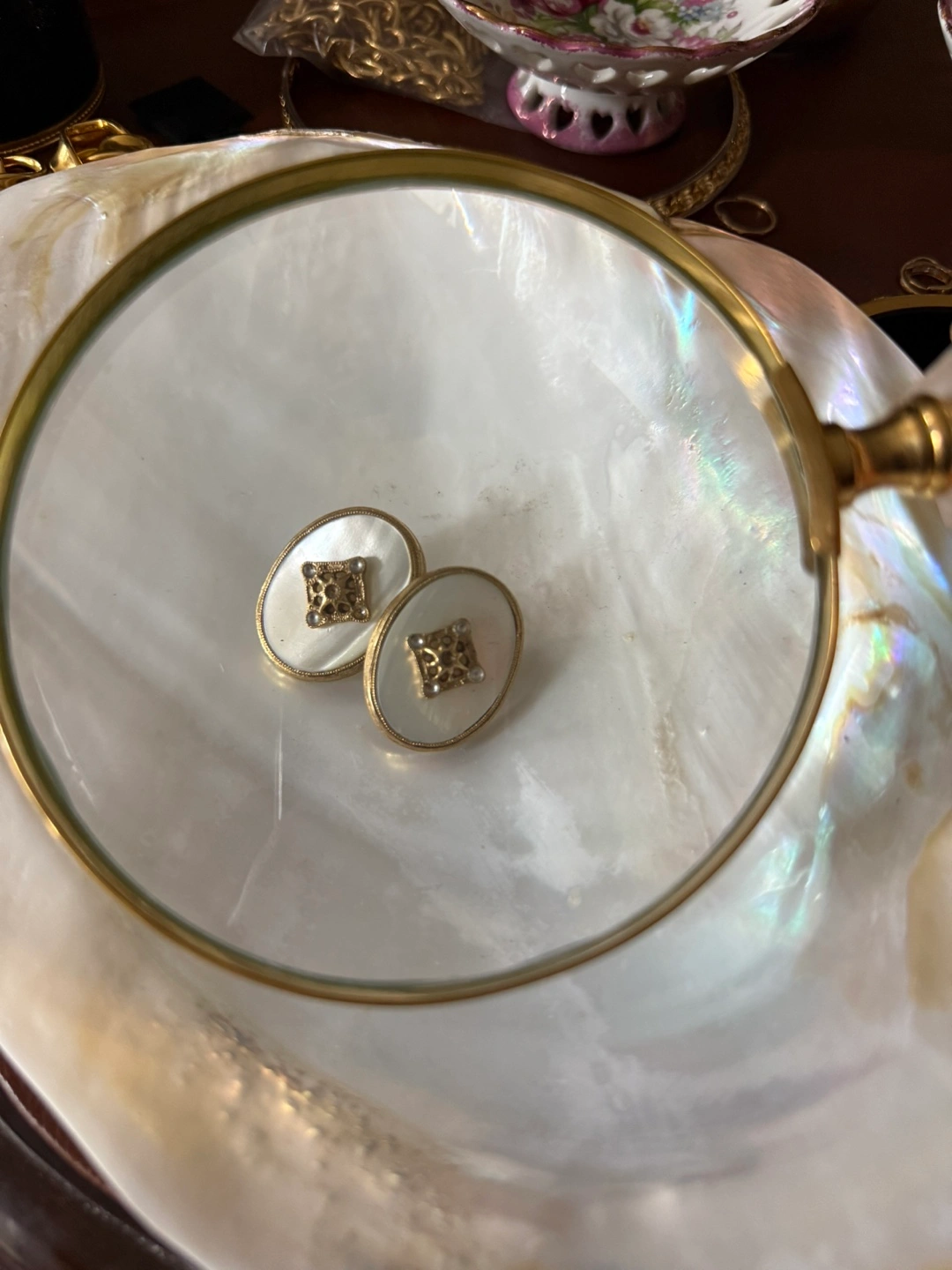 #1. For Pierced ears, looks like it’s missing stones not sure if they come that way or if they are missing stones but have mother of pearl on them —— $6