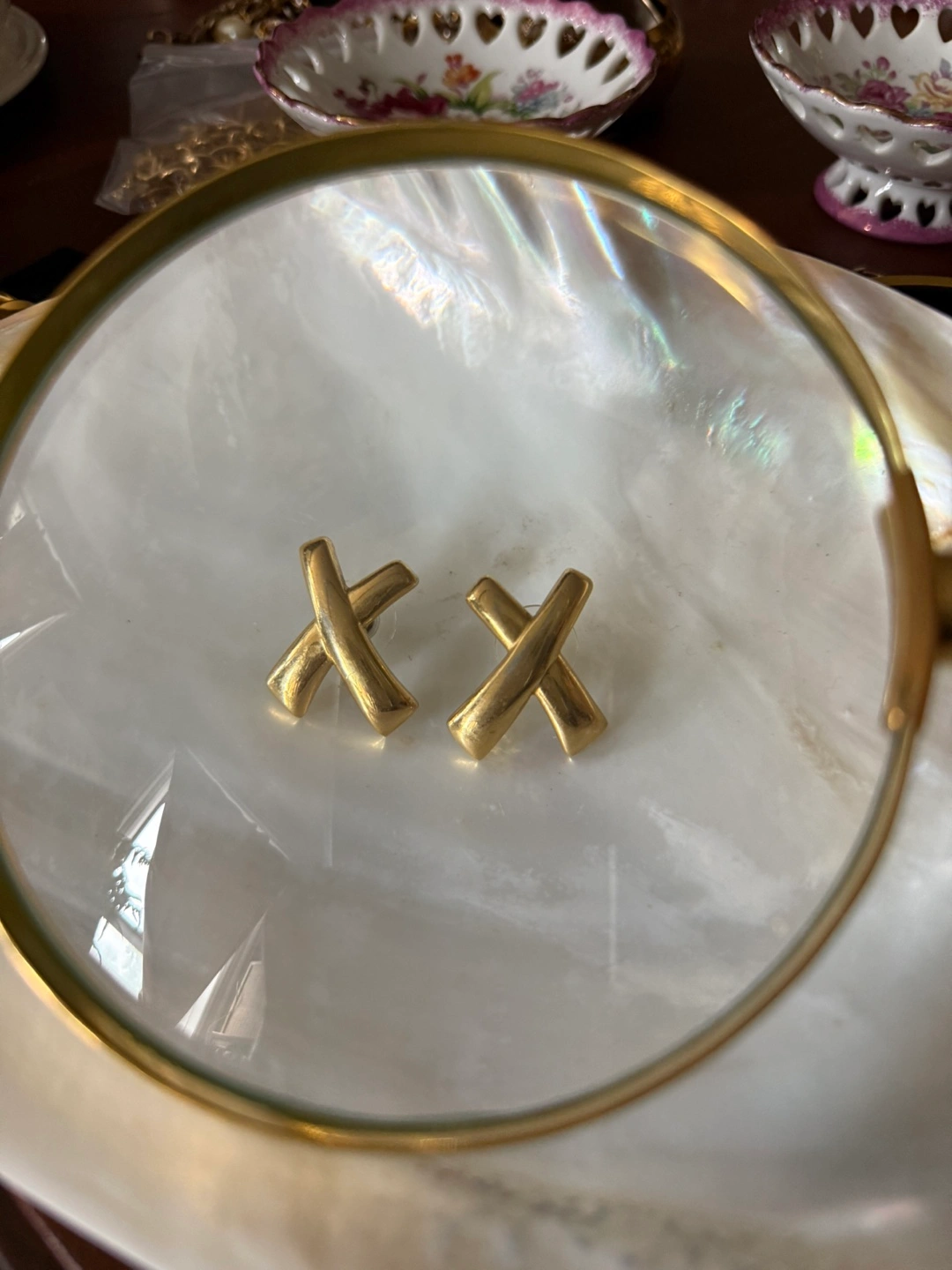 #2 For Pierced ears, X earrings gold tone. —— $10