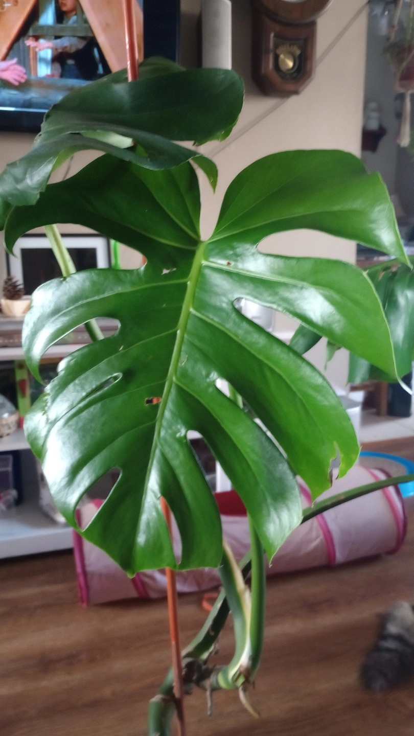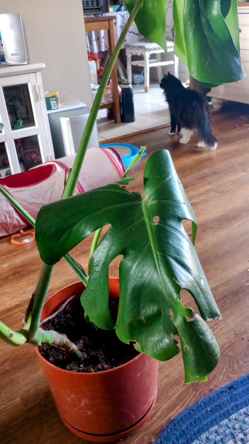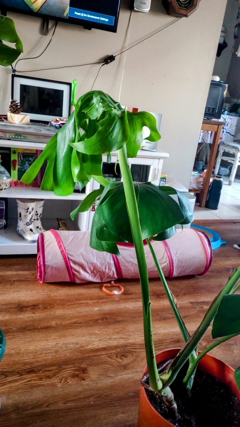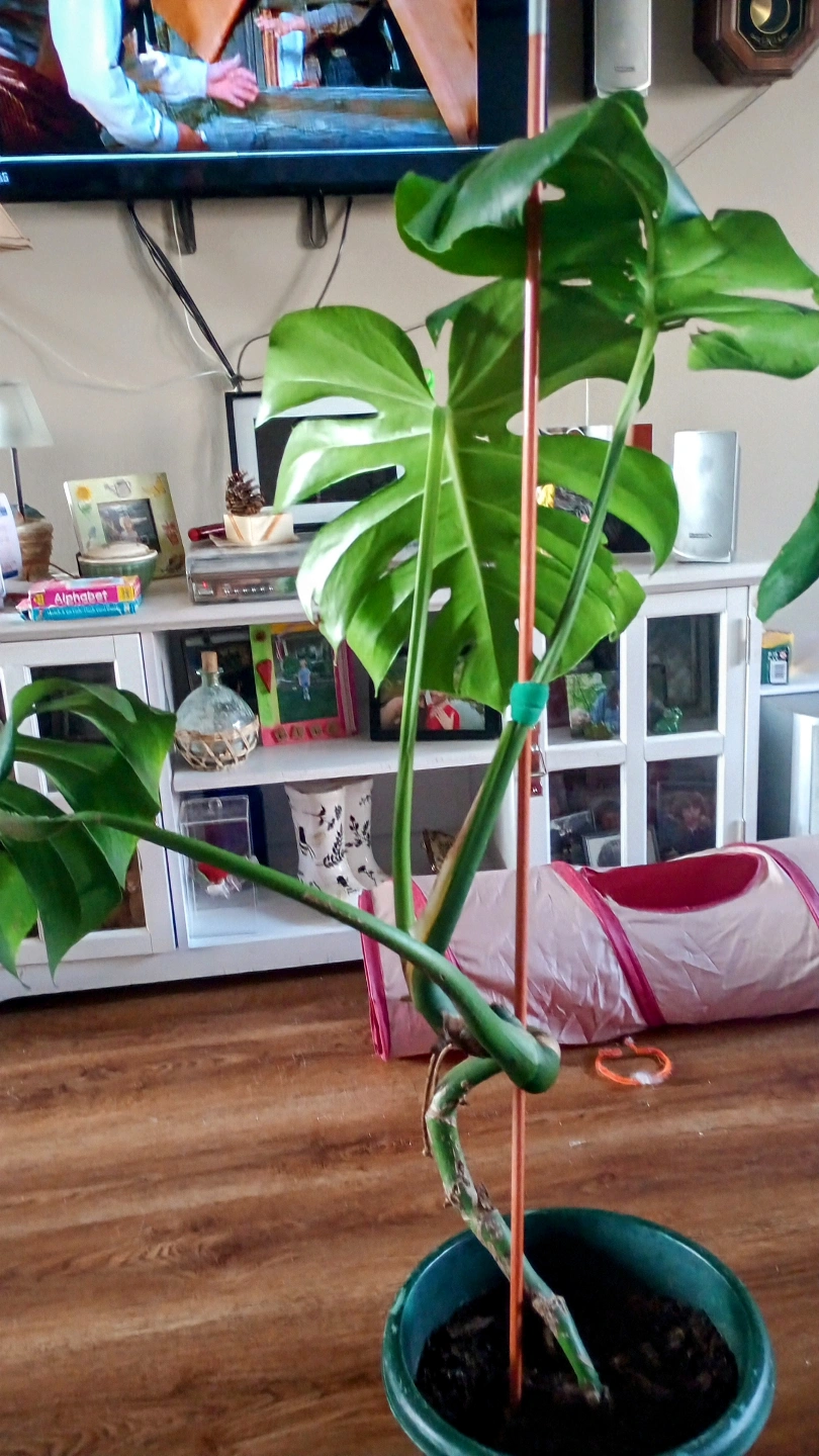 LIVE MONSTERA PLANT. I HAVE TWO BOTH PRETTY MUCH THE SAME SIZE. CAME FRO THE MOTHER PLANT. DOING QUITE NICELY. BOTH HAVE NEW GROWTH. NEED TO BE STAKED. I USE MONSTRA LIQUID FERTILIZER. I HAVEN'T WATERED THEM MUCH BECAUSE IT WAS WINTER.