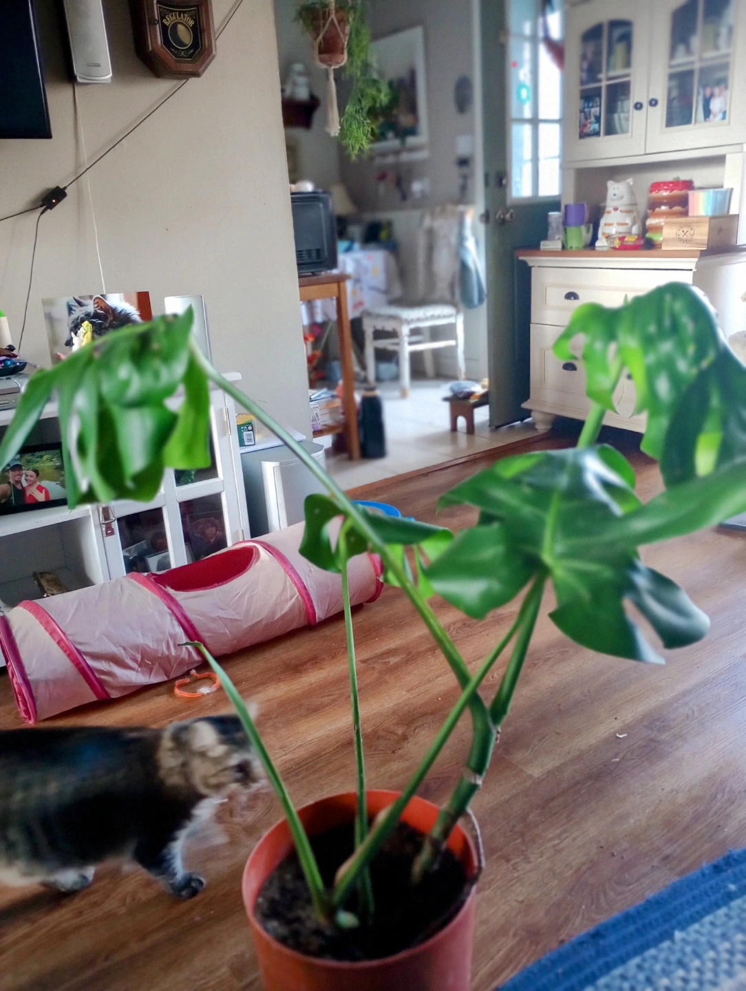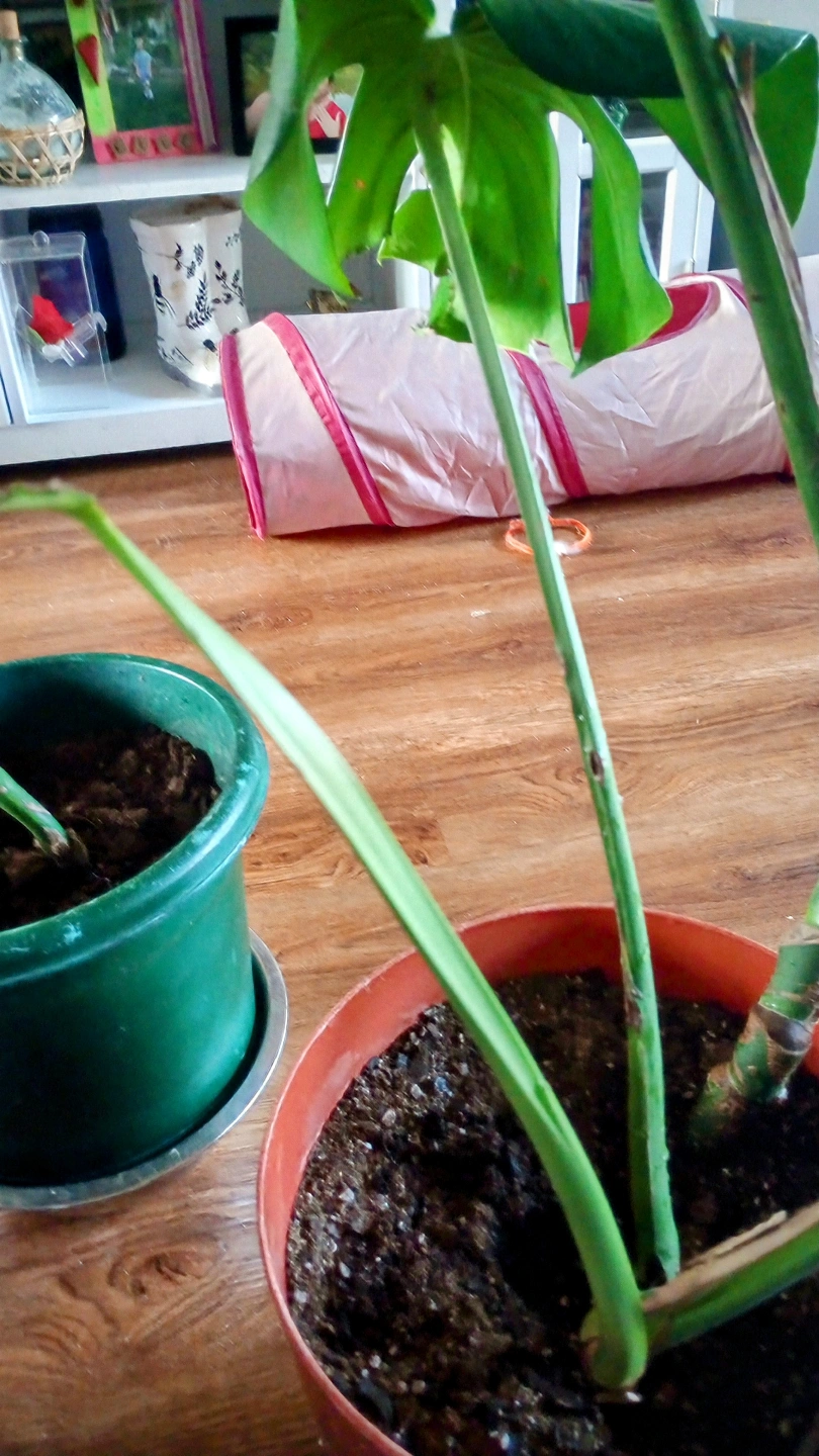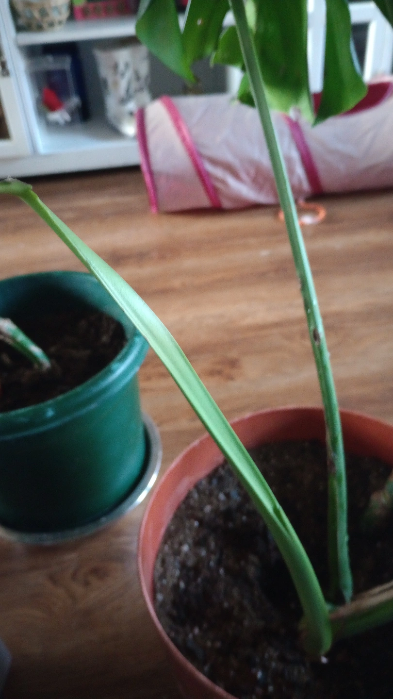 LIVE MONSTERA PLANT. I HAVE TWO BOTH PRETTY MUCH THE SAME SIZE. CAME FRO THE MOTHER PLANT. DOING QUITE NICELY. BOTH HAVE NEW GROWTH. NEED TO BE STAKED. I USE MONSTRA LIQUID FERTILIZER. I HAVEN'T WATERED THEM MUCH BECAUSE IT WAS WINTER.