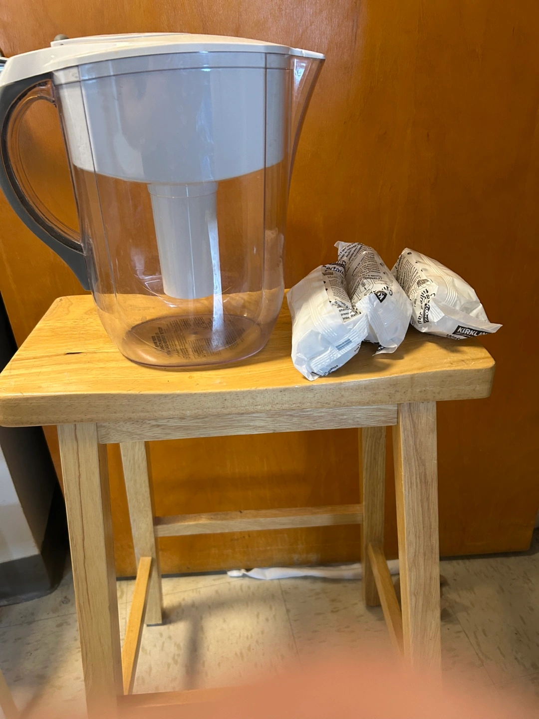 Brita water filter pitcher. Includes three extra filters. Great for clean, refreshing water.