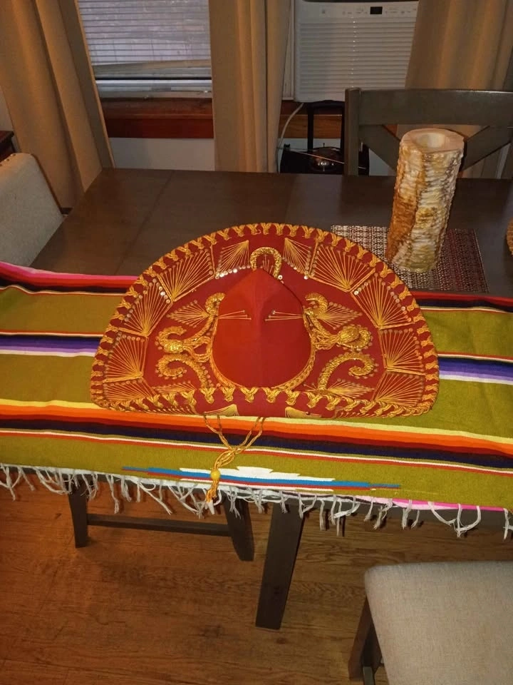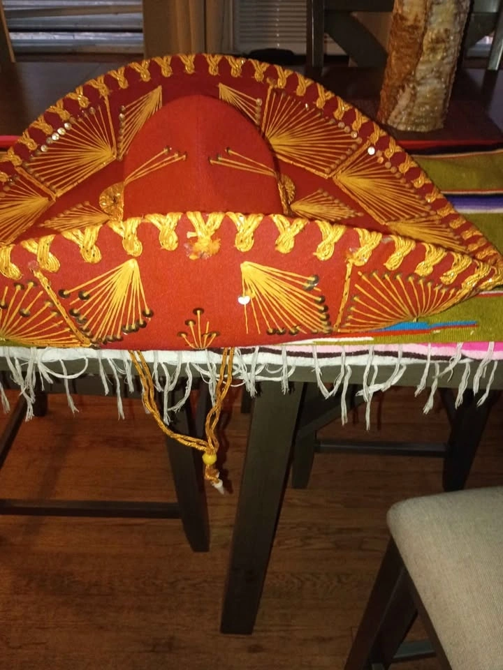 Antique Mexican sambrero, some detachment on the inside but other than that in excellent condition I measured with a tape measure it was 21 to 22 in round head measurement Hecho Made in Mexico Sombrero