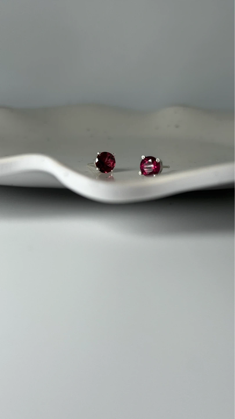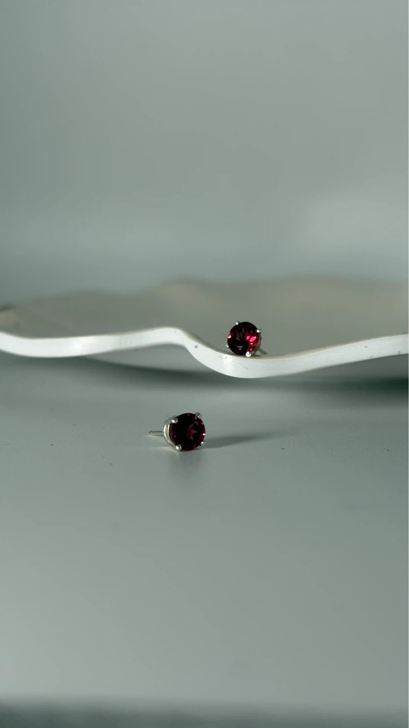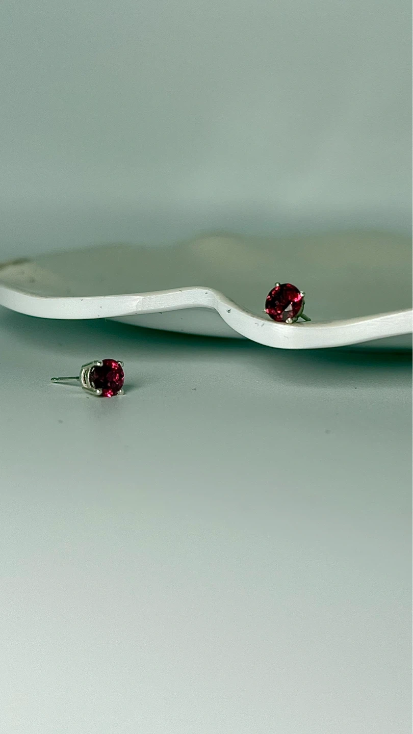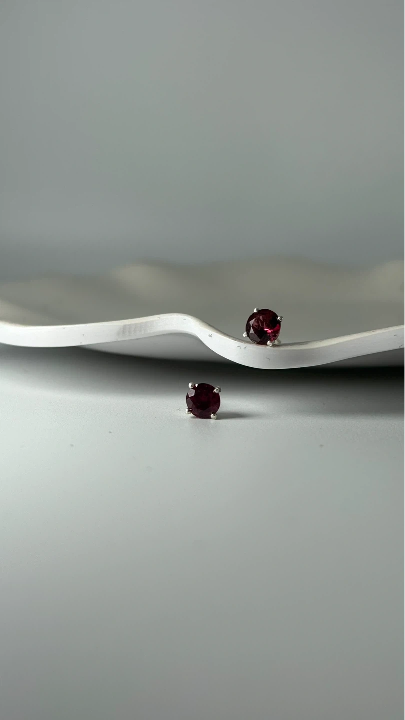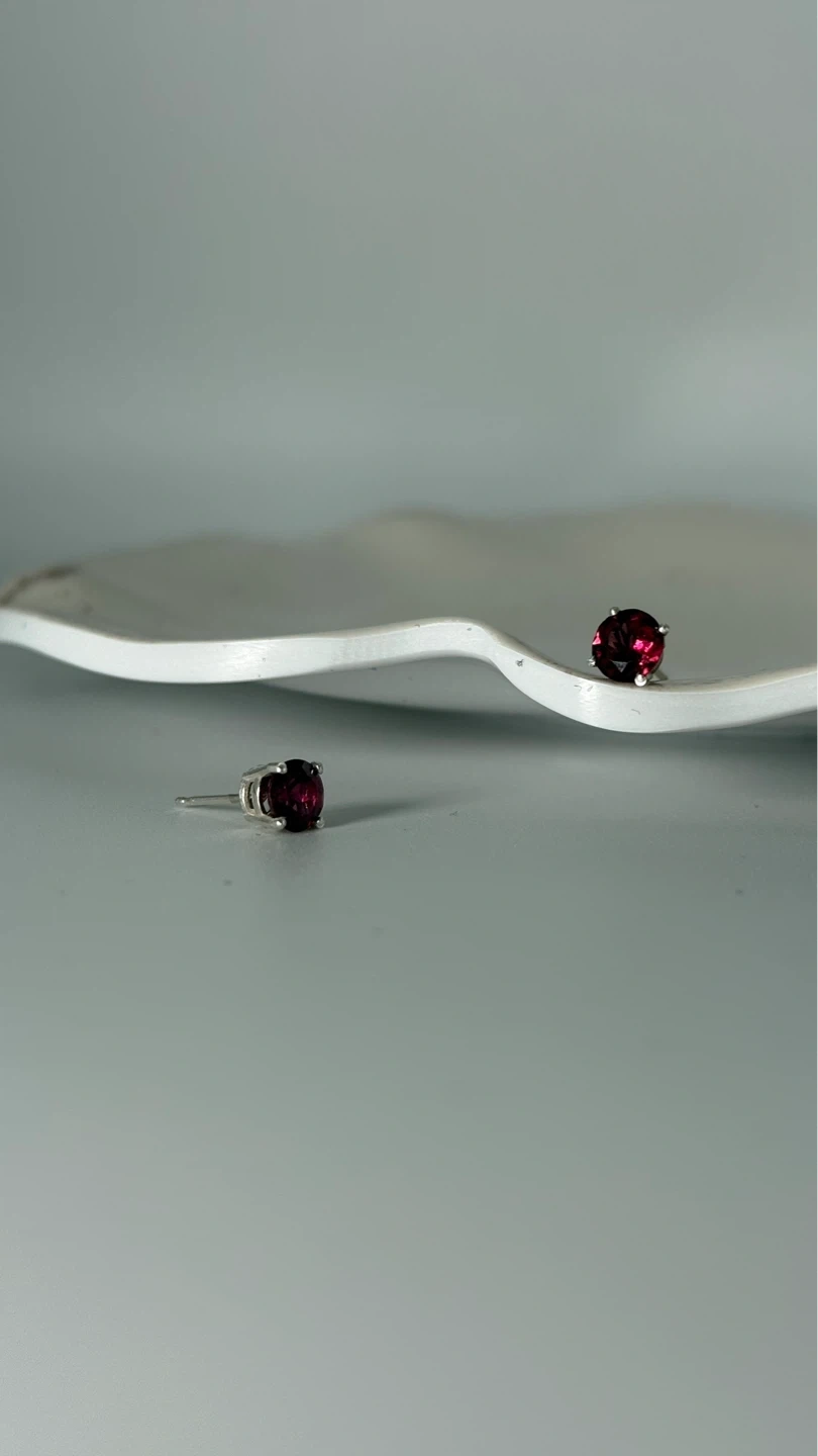 Beautiful gemstone stud earrings with silver-tone settings. These earrings showcase a deep red gemstone, perfect for adding a touch of color. A classic choice for everyday wear or special occasions!