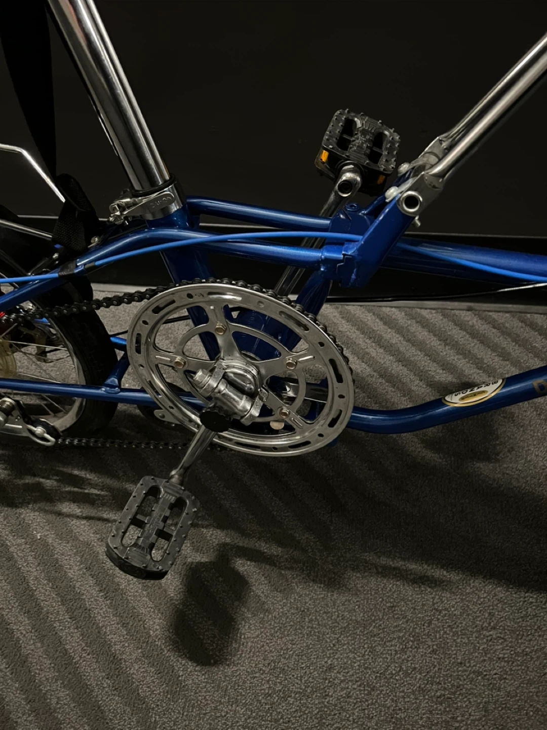 10Selling a Dahon folding bike in blue! It's perfect for city commuting or storing in small spaces. This bike is in good condition and ready for a new owner. Great for anyone looking for a convenient and portable mode of transportation Vintage Dahon classic foldable bike. The classic is one of the first Dahon model. Folds very small (fit in the box as seen in the pic). Saddle upgraded and everything in good shape. Very new center wheel. Can throw in lock, bell helmet, floor pump, original saddle, spare inner tubes if needed. Pick up in LIC waterfront.