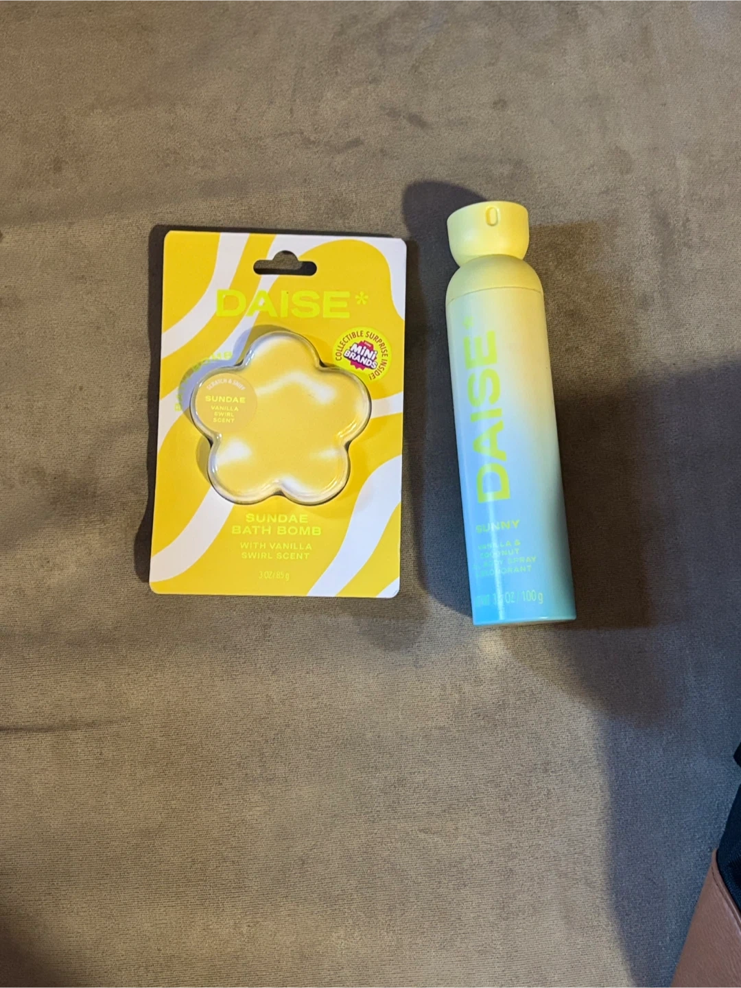 93Selling a DAISE Sunny Vanilla & Coconut All Body Spray & Deodorant, as well as a Vanilla swirl scented bath bomb!