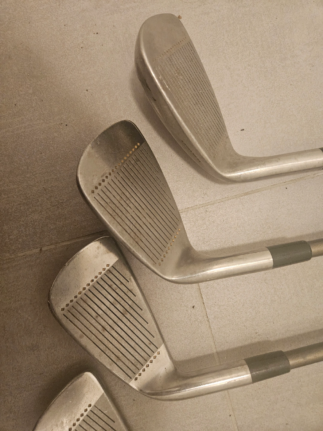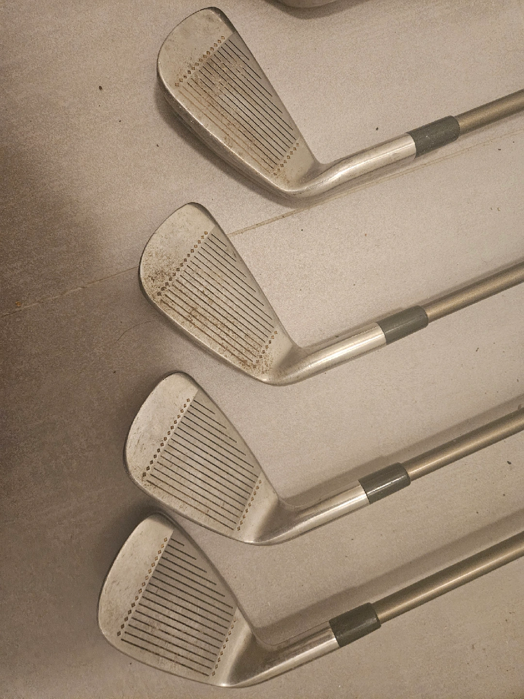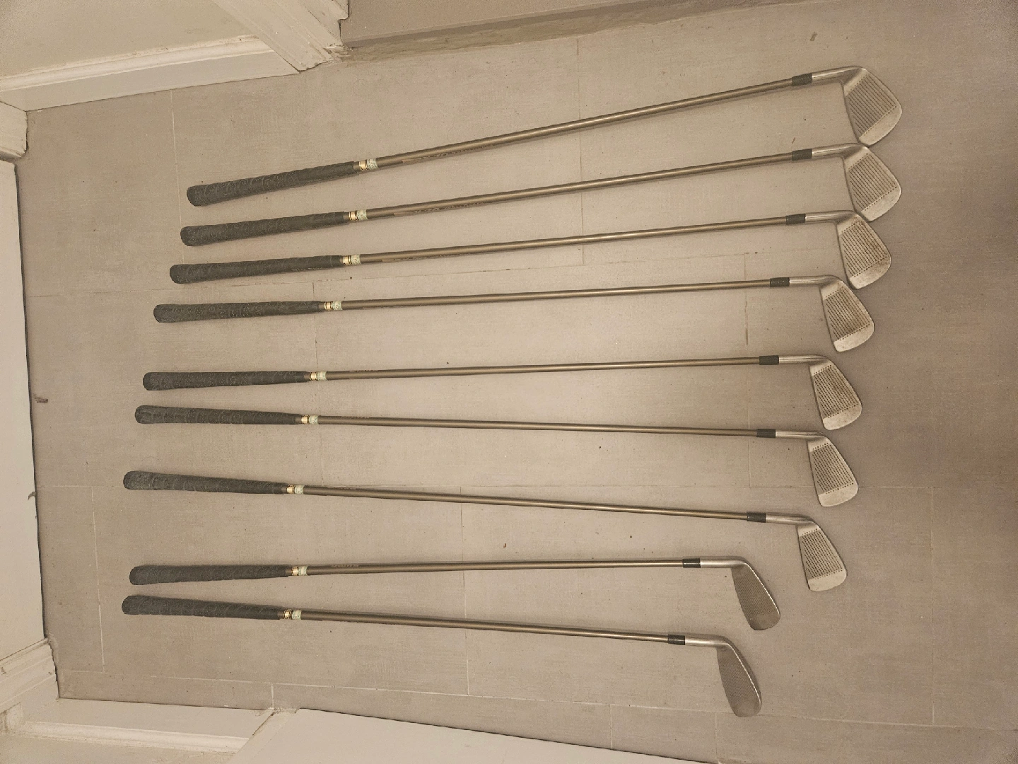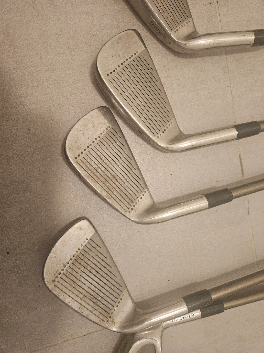 Selling a complete set of Daiwa Hi-Trac golf clubs, including 3-9 irons, a sand wedge and a pitching wedge. Some signs of wear, but good condition overall. Open to fair negotiation.