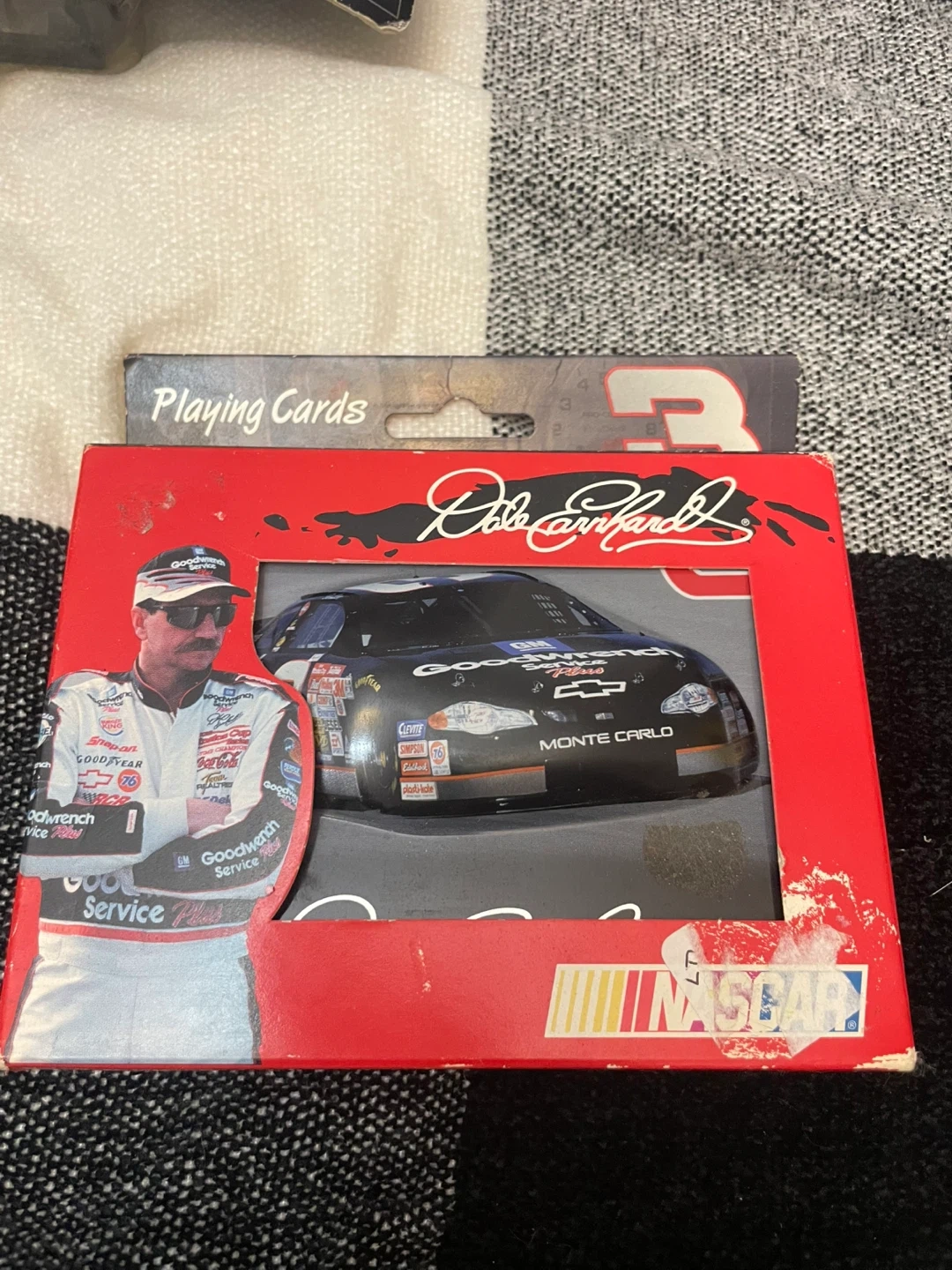10Selling a set of Dale Earnhardt NASCAR playing cards. The tin contains two decks of quality playing cards of Dale Earnhardt and his well-known #3 race car. Two different decks are suitable for all card games and are packaged in a collector tin commemorating the NASCAR 2000 racing season