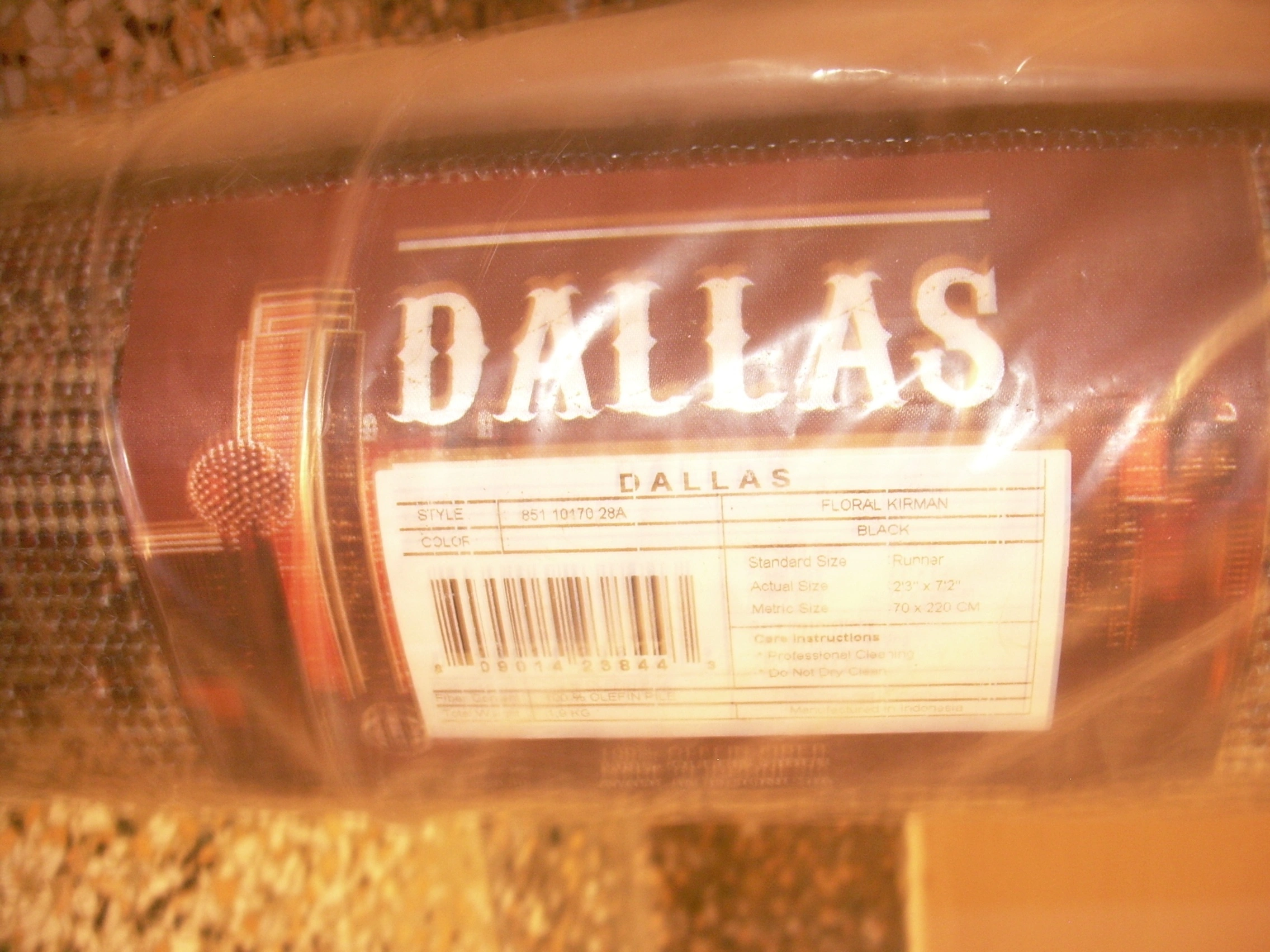 This is new as it has never been unpacked. It is Dallas Collection, Foral Kirman. The material is: Olefin Pile.