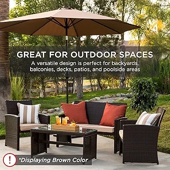 Brand new in box (fit to car).This dark brown wicker patio furniture set is perfect for your outdoor space! It includes a loveseat, two chairs, and a coffee table with a tempered glass tabletop. The modular design allows you to rearrange the furniture to suit your patio setup and seating needs. It's a versatile design is perfect for backyards, balconies, decks, patios, and poolside areas. Pickup near Harlem and Devon Cash only. Check my other items for sale, thank you
