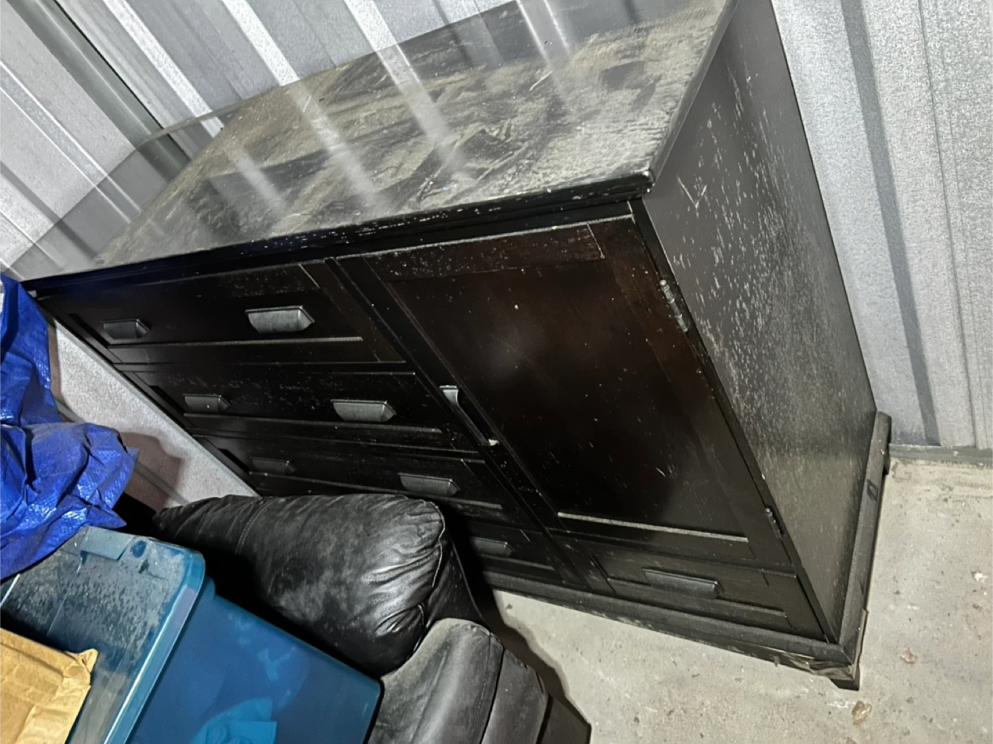 65Selling a dark brown dresser with an attached mirror. The dresser is very sturdy and has multiple drawers for storage. Selling as is and will need to be wiped down and mirror and 1 leg reattached but this is a steal as it is still functional and sturdy. Closing storage unit and will only be available for pick up on Sat 9/27