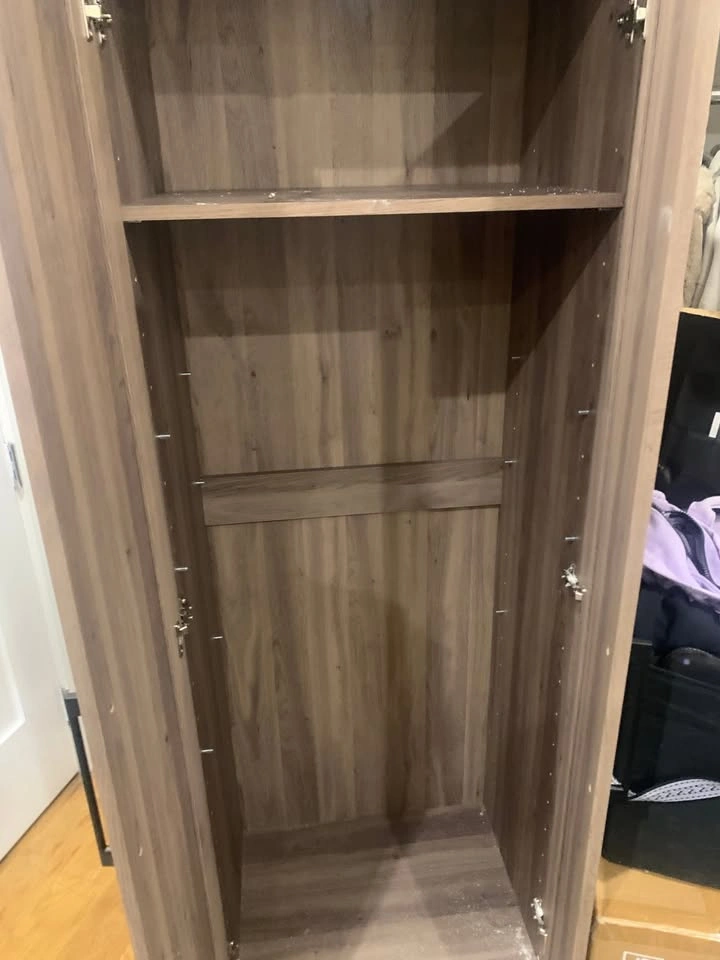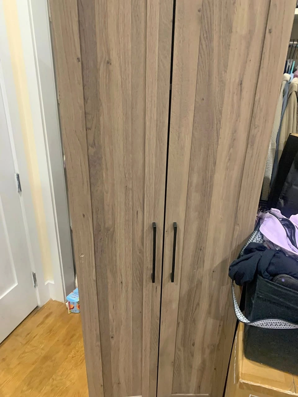 35Had for less than a year, minor cosmetic imperfections but otherwise completely fine. Dimensions (Overall): 70.91 Inches (H) x 23.31 Inches (W) x 17.01 Inches (D) Weight: 100 Pounds Material: MDF (Medium-Density Fiberboard) (Frame) Surface Material: Paper Laminate Suggested Age: Adult (18 Years and Up) Features: Adjustable Shelf/Shelves Assembly Details: Adult Assembly Required, Tools Not Provided Compartment 1 Type: Storage Compartment (1): 65.59 Inches (H) x 21.97 Inches (W) x 15.35 Inches (D) Number of Shelves: 5 Number of Doors: 2