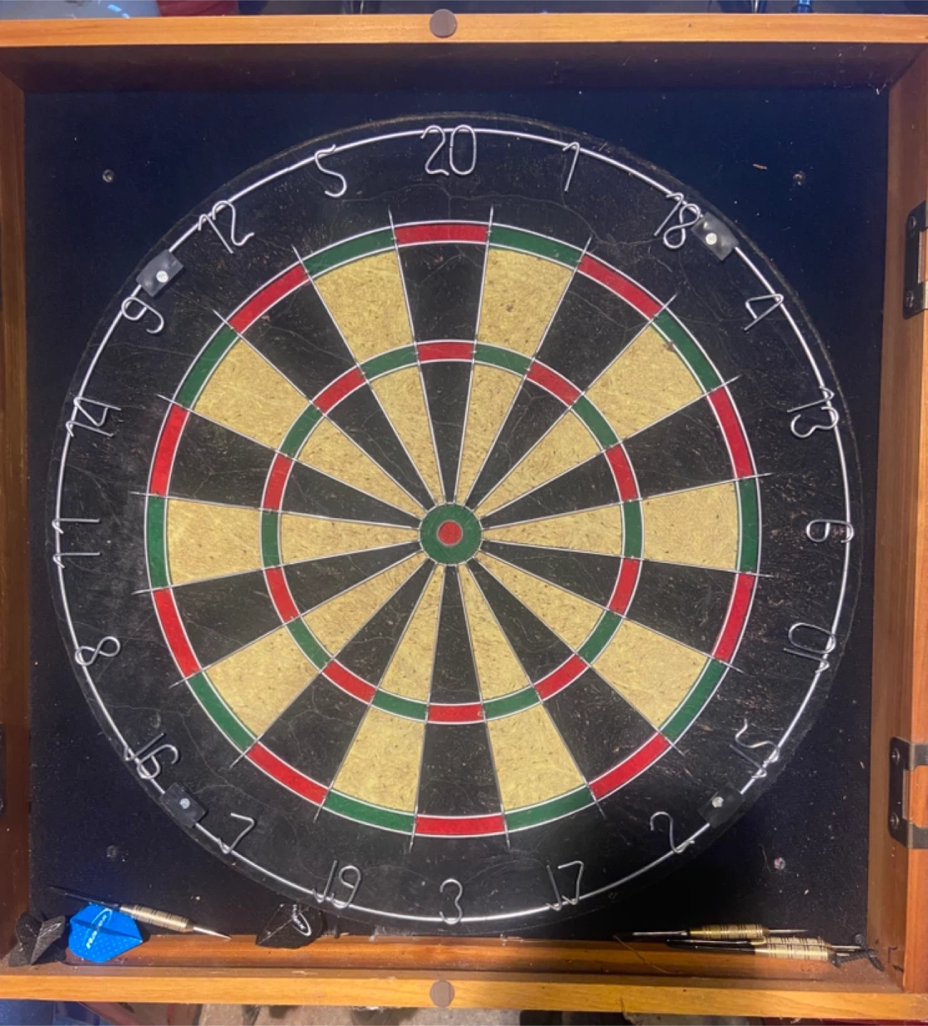 20Dart board with cabinet included! It's in good condition and ready for some fun games. Perfect for your game room or garage!