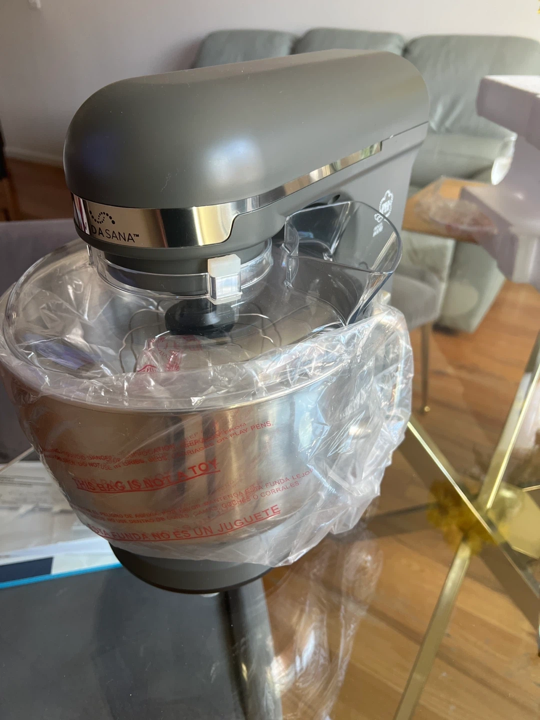 60I'm selling a Dasana stand mixer that's in like-new condition! It still has the plastic wrapping on the bowl. It's a stylish and functional appliance for any kitchen. Feel free to reach out if you're interested!