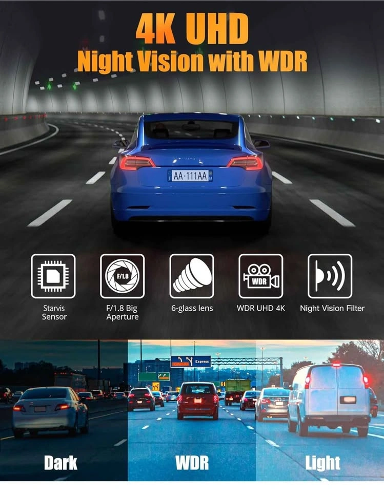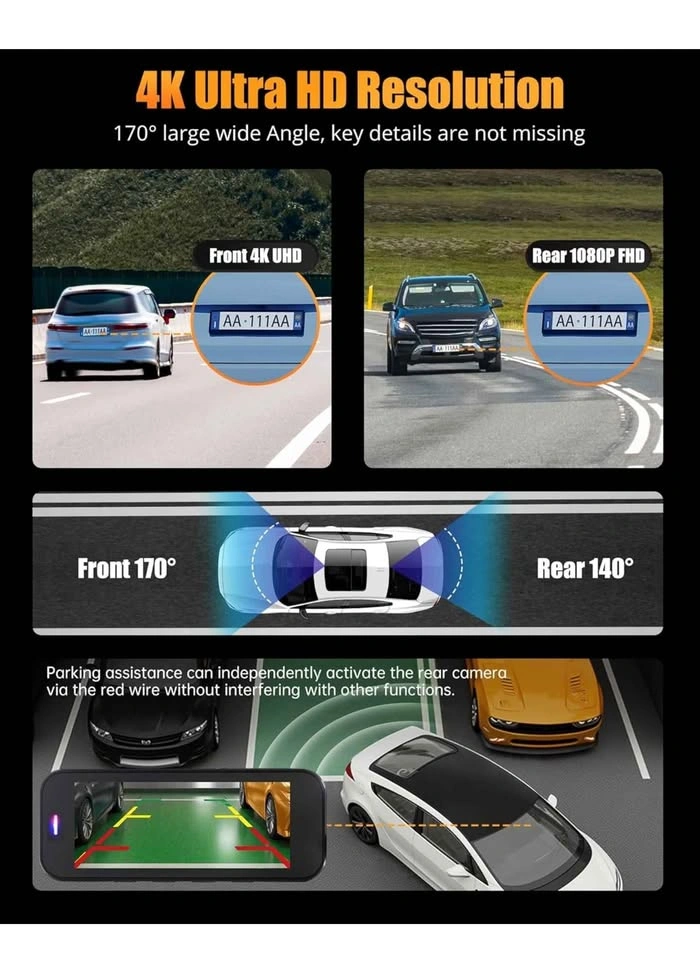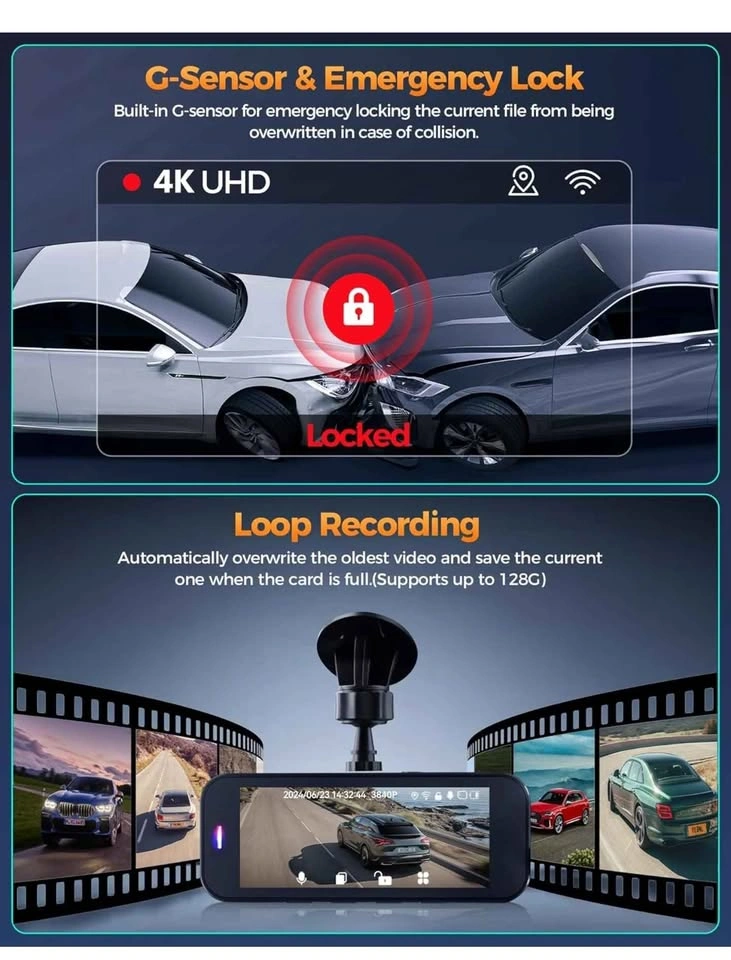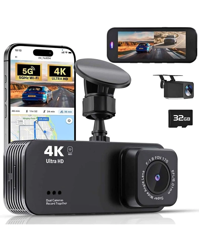 22Dash Cam Front and Rear, 4K+1080P Dual Dash Camera for Cars with 5G WiFi, Built-in 32GB Card, Night Vision, G-Sensor, 24H Parking Mode