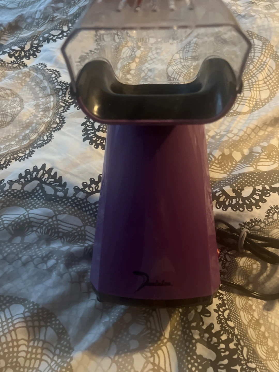 37I'm selling a Dash hot air popcorn maker in purple! It's in great condition and ready to make some delicious, healthy snacks for you. It's easy to use and clean, making it a convenient addition to your kitchen