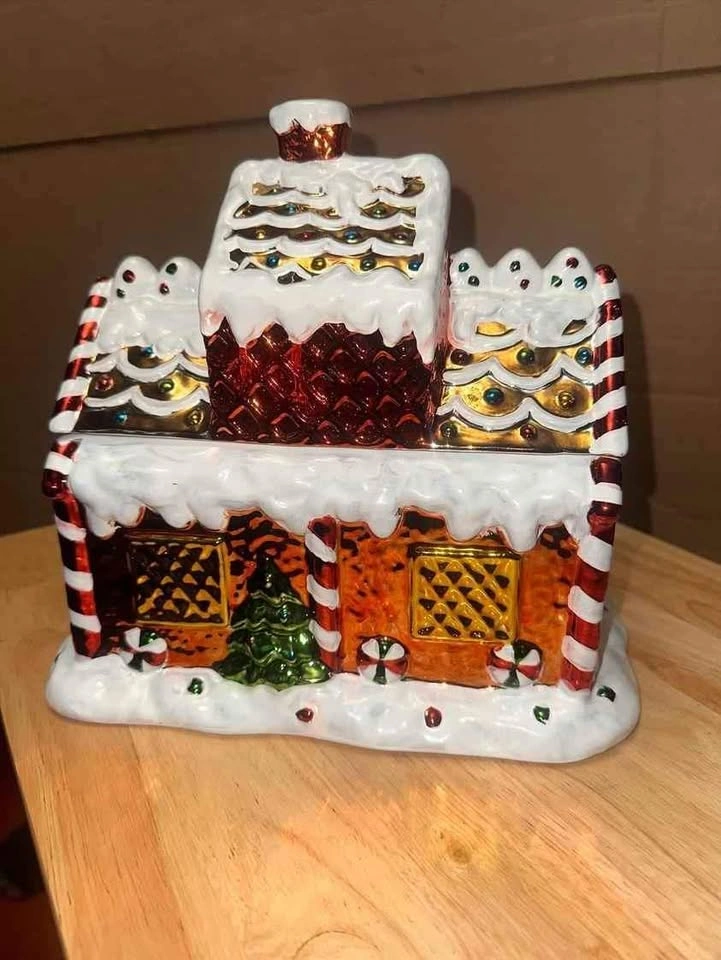15Beautiful Gingerbread House cookie jar. Comes in original box. No cookies included.