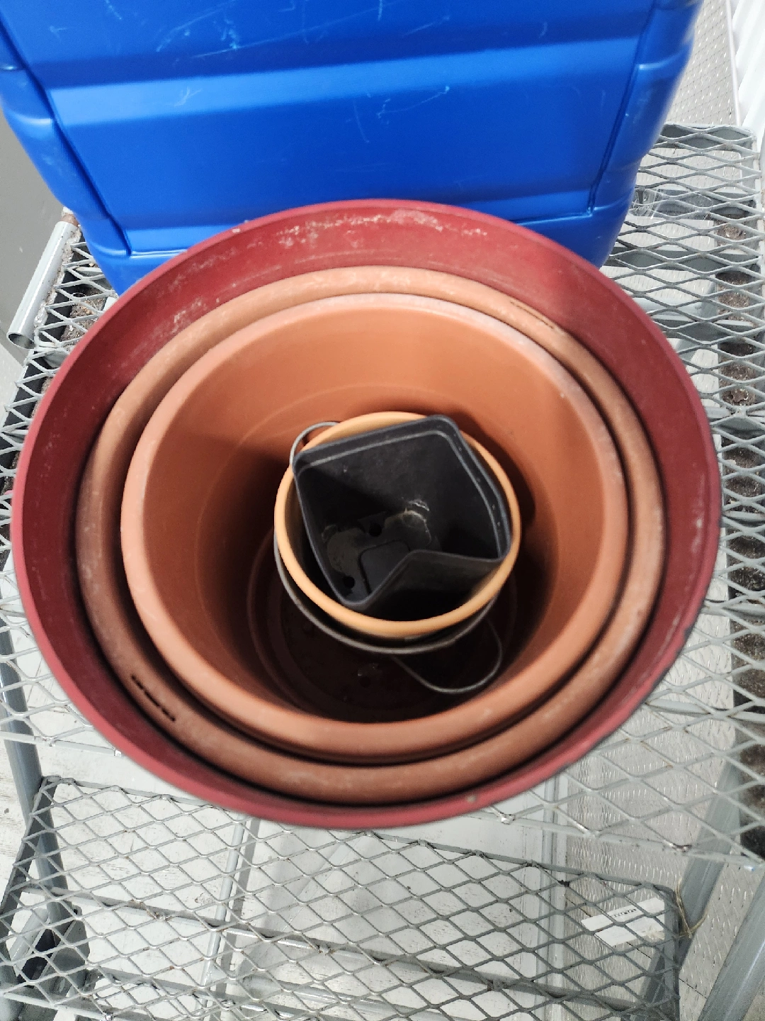 I'm selling various sizes of clay and plastic plant pots. They're perfect for indoor or outdoor use and will add a pop of color to your space.