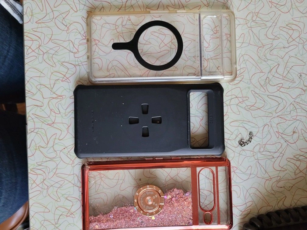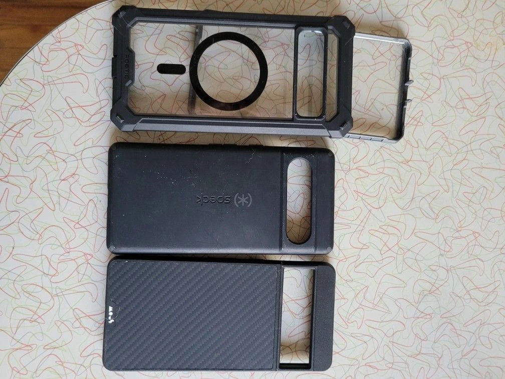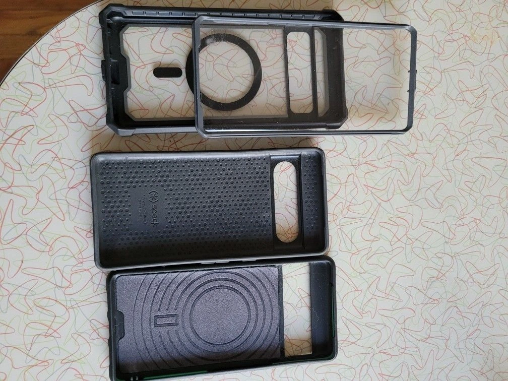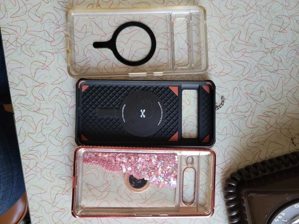 We have 7 Google Pixel 7 Pro cases we no longer need and are selling them for a cheap price. We upgraded to the Google Pixel 9 Pro XL. We have a few MagSafe cases for the Pixel 7 and a few that are not MagSafe. Asking $10 per case, let me know which cases you're interested in or if you want all of them.