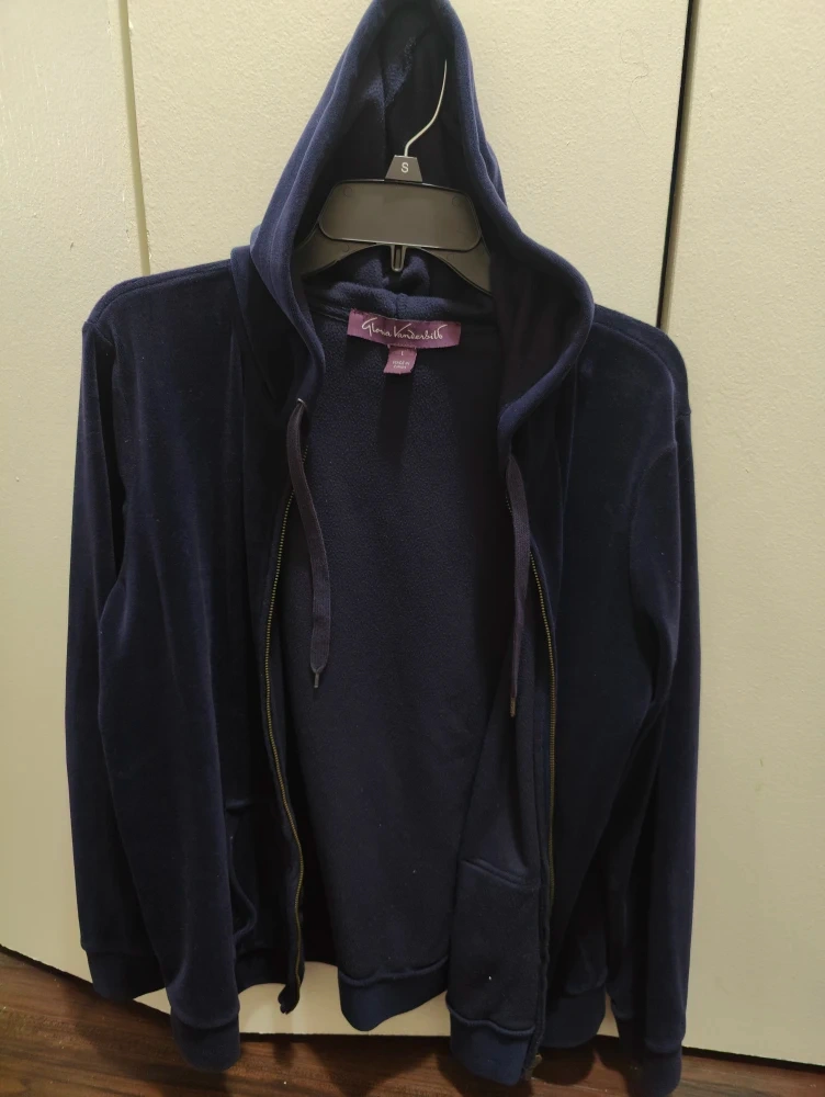 Selling a comfy Gloria Vanderbilt velour zip-up hoodie in size L! It's a stylish and cozy piece for layering or lounging