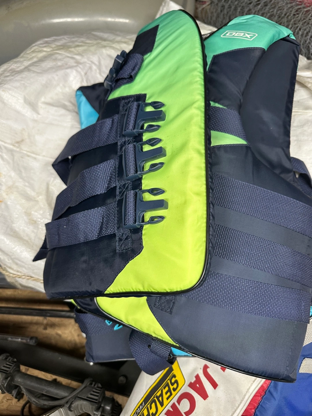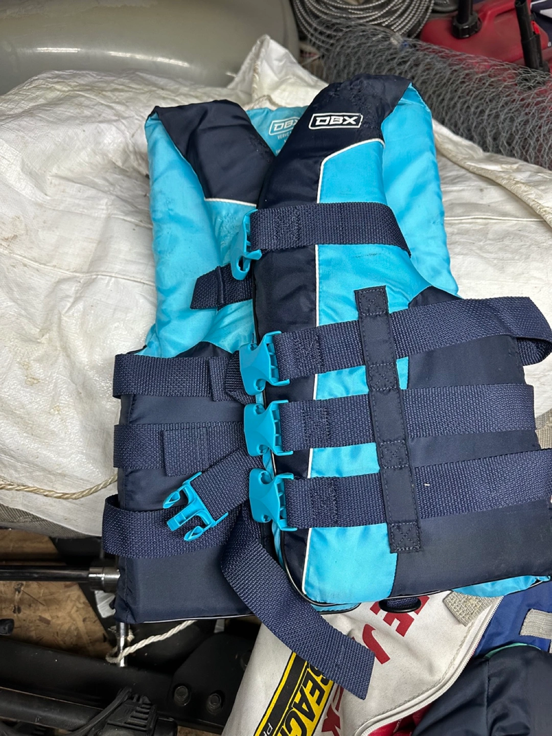 15Selling a DBX life vest. It features a combination of light blue and navy colors. Check out the photos for a closer look!