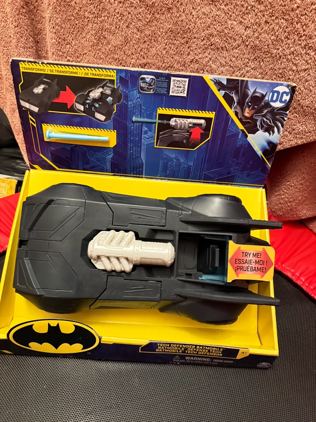 70Selling a brand new, in-box DC Tech Defender Batmobile! This cool Batmobile transforms and is ready for action. Perfect for any Batman fan! Great gift