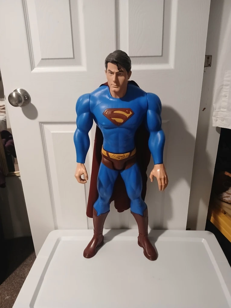 10Selling a DC Comics Superman action figure! It's in good condition and ready for a new home. The figure features Superman in his classic blue and red suit with a flowing cape. Great for collectors or kids who love superheroes