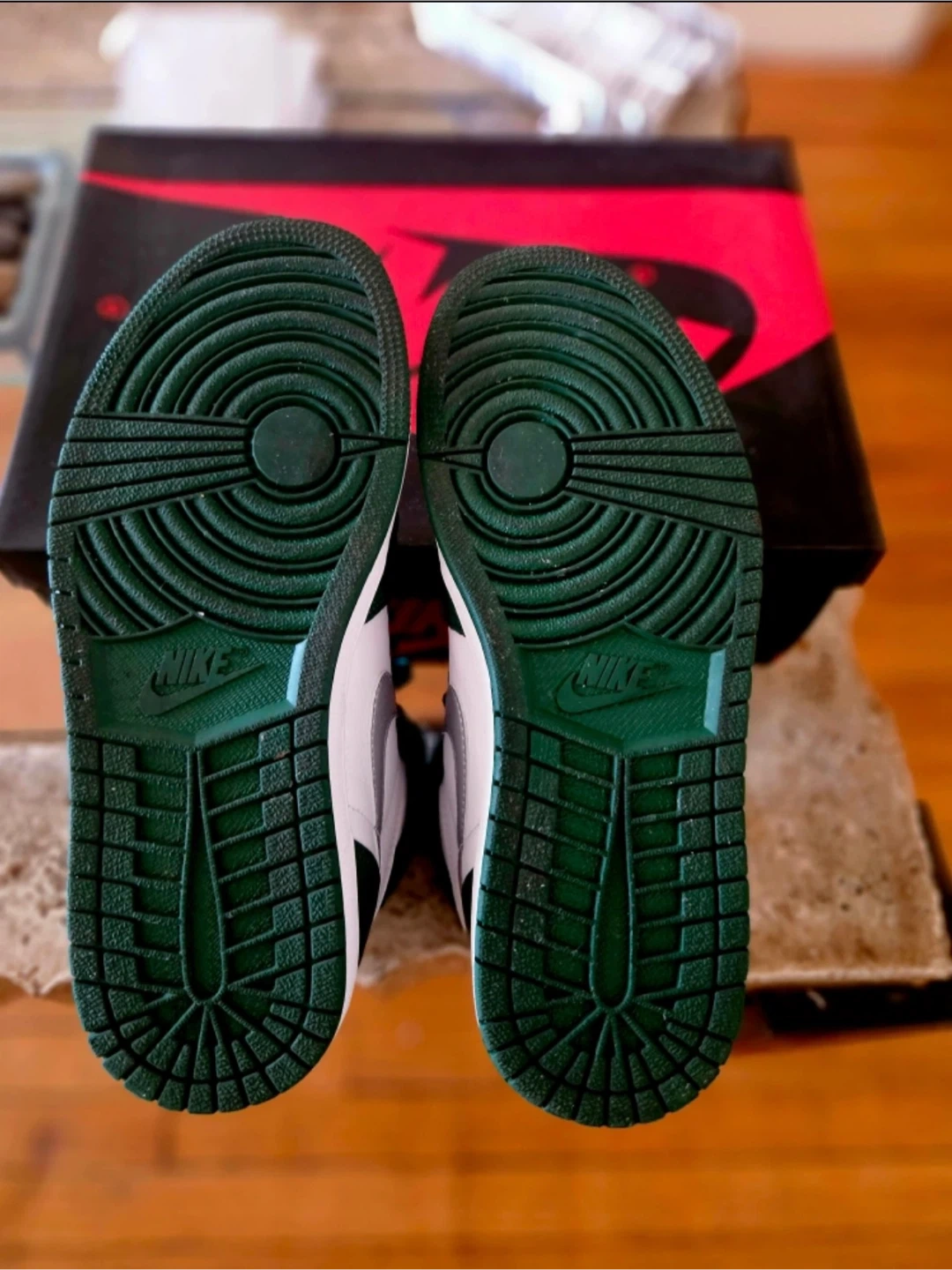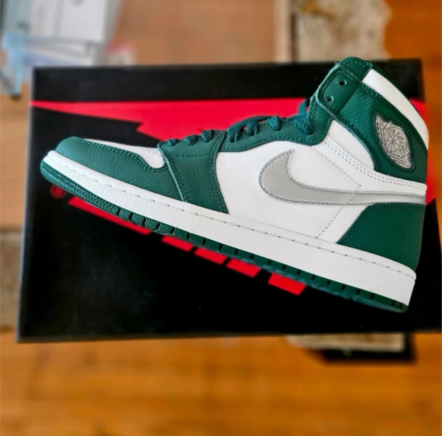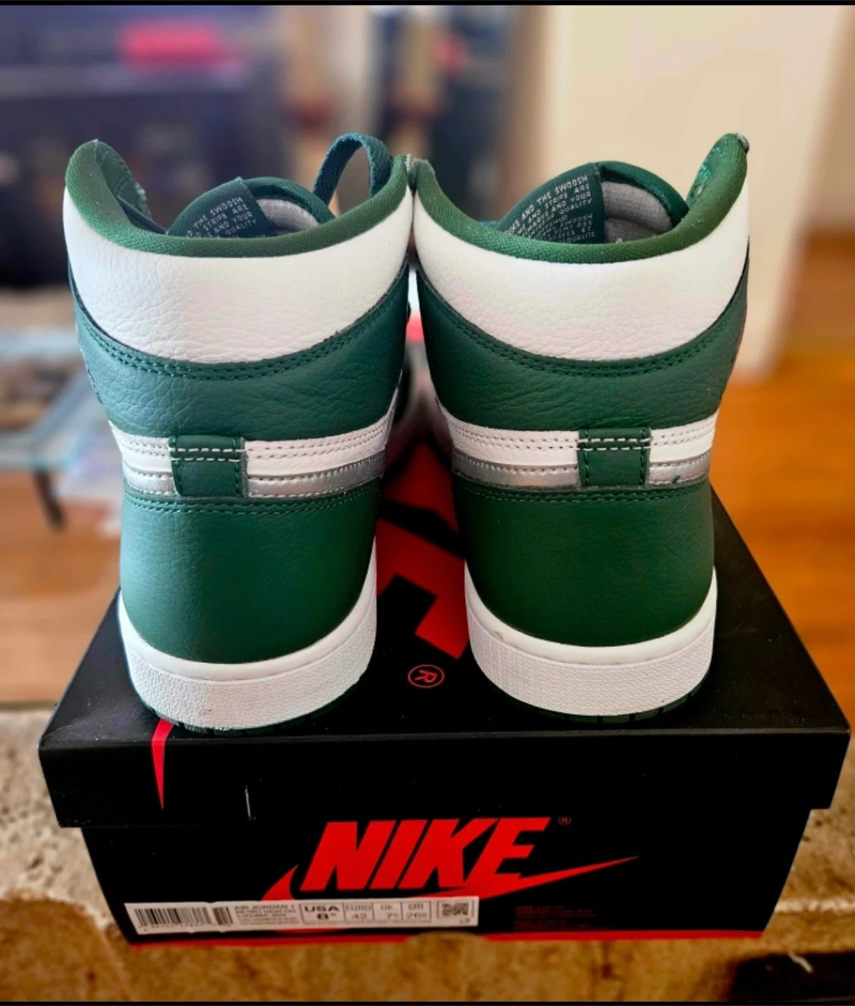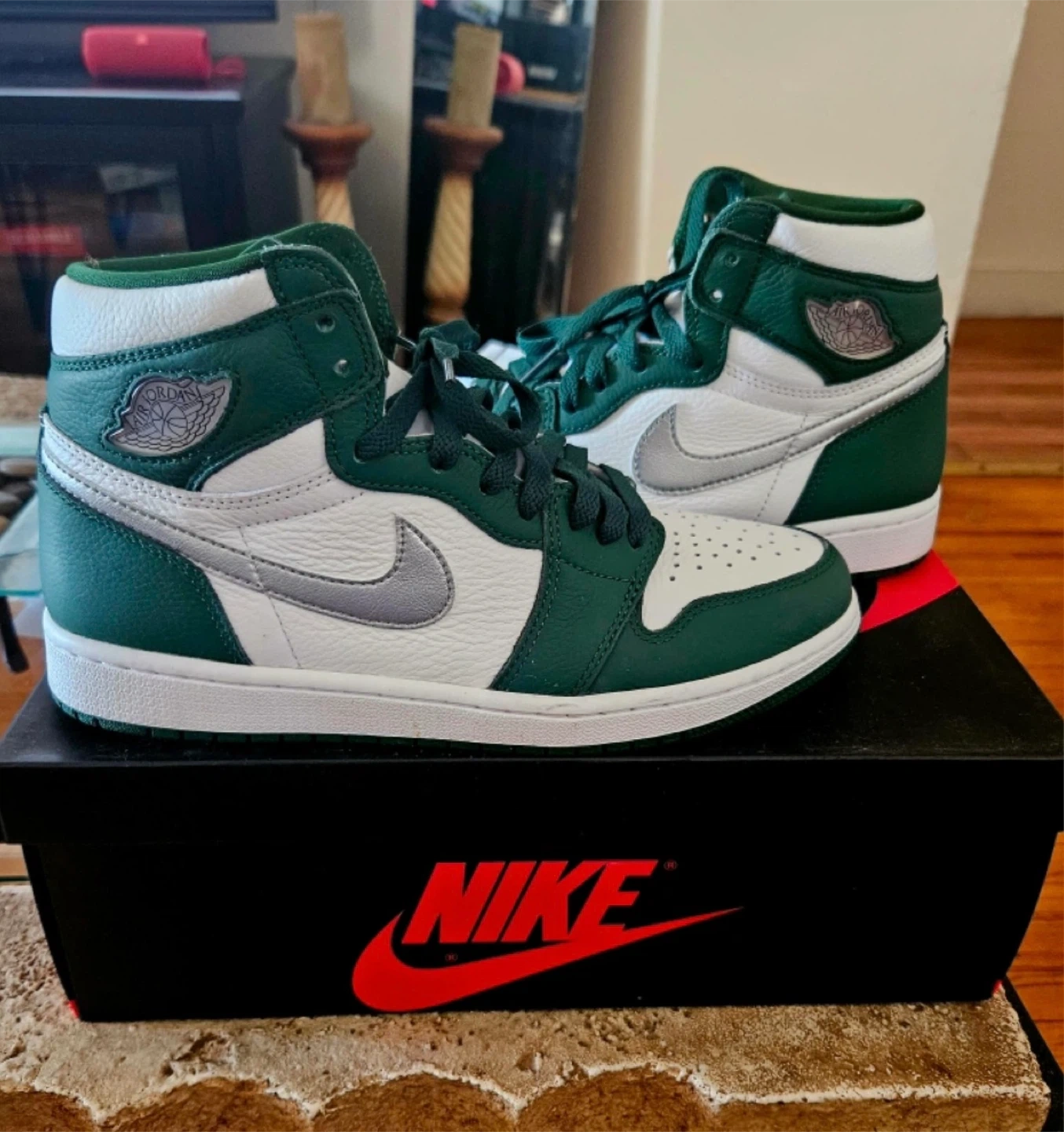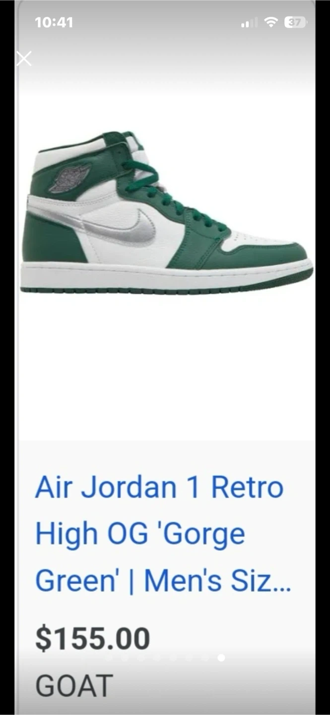 Selling a pair of Nike Air Jordan 1 Retro High OG in the Gorge Green colorway. These are a size 8.5 US. Comes with the original box!
