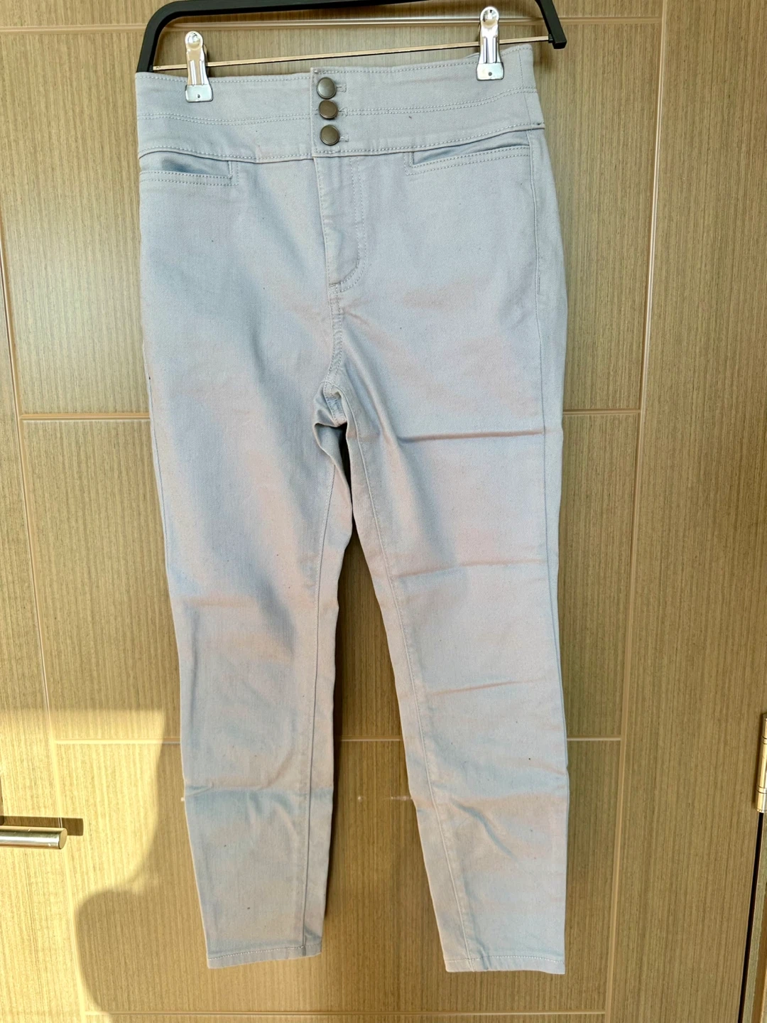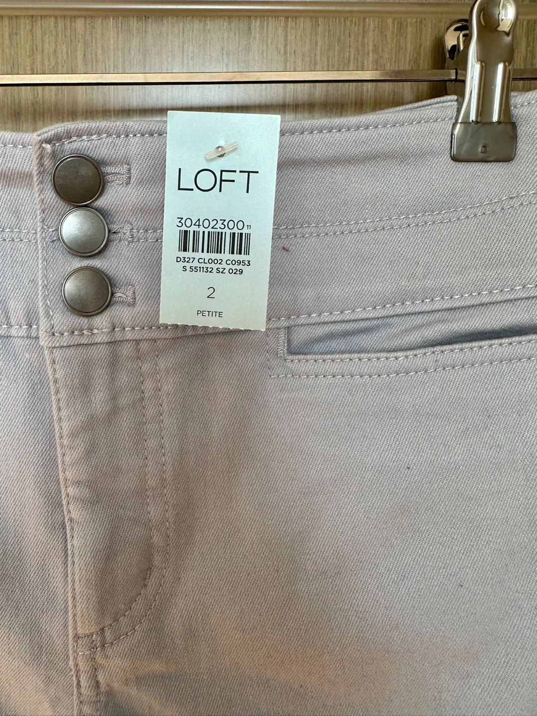 Selling a pair of LOFT petite pants in a light blue color. They are size 2 and feature a stylish three-button detail at the waist. These pants are in great condition and ready for a new owner!