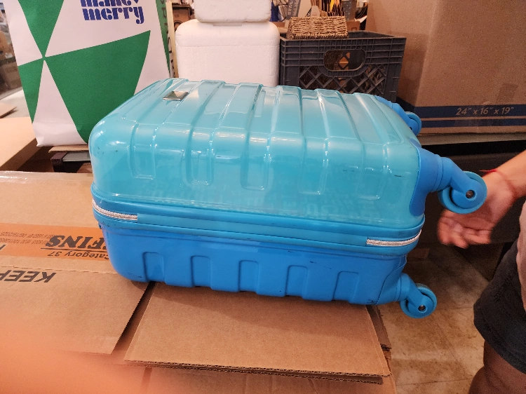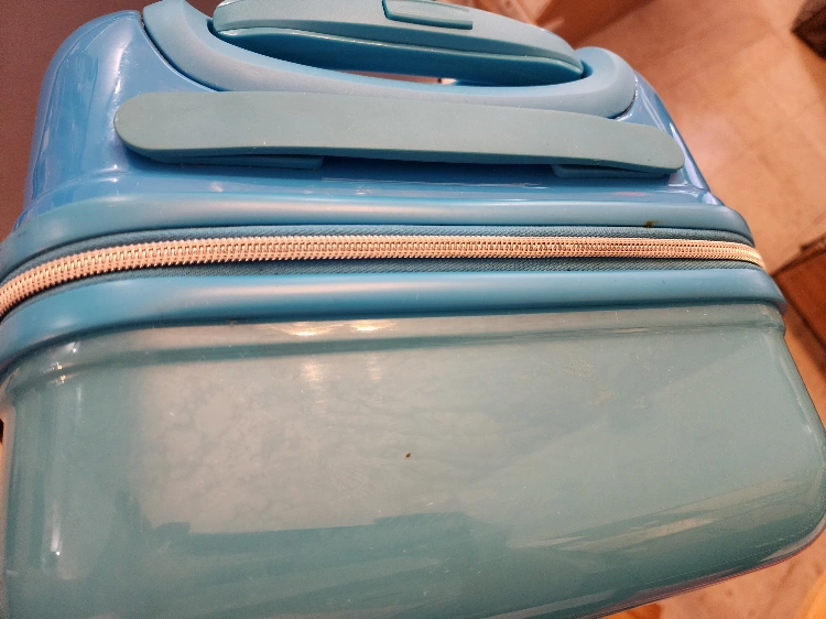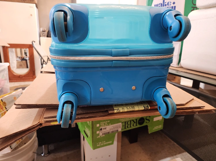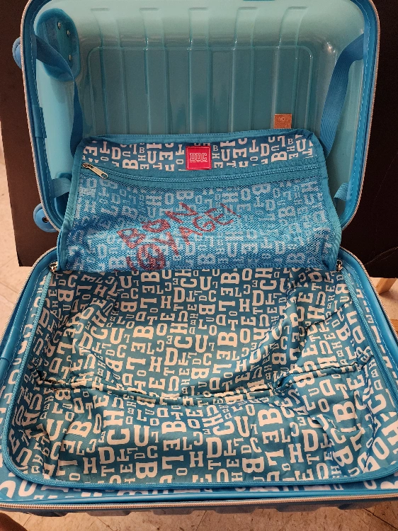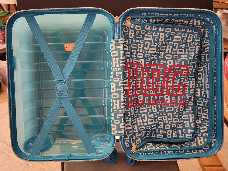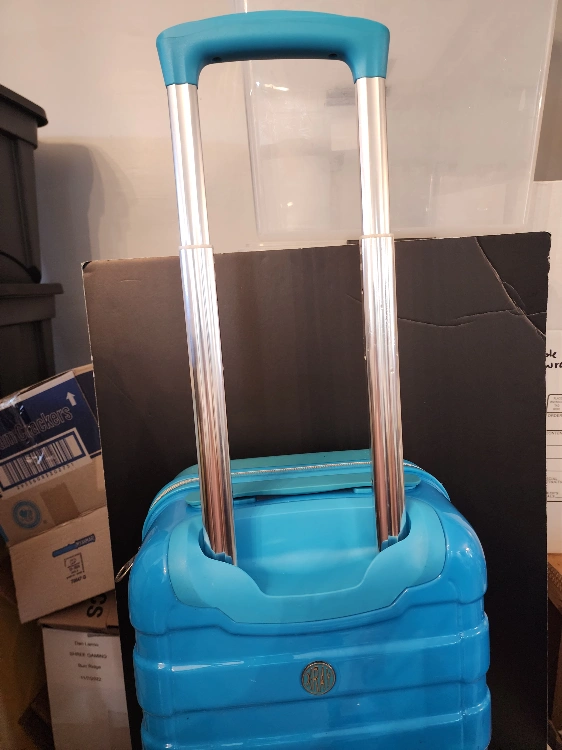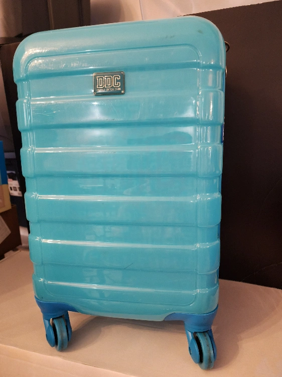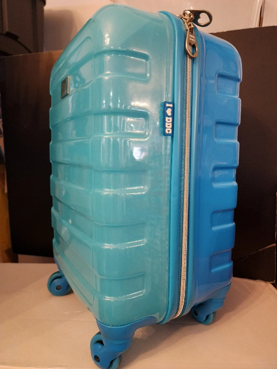 120DDC Double Decker carry-on suitcase in a shade of blue! It features a convenient extendable handle and smooth-rolling wheels.