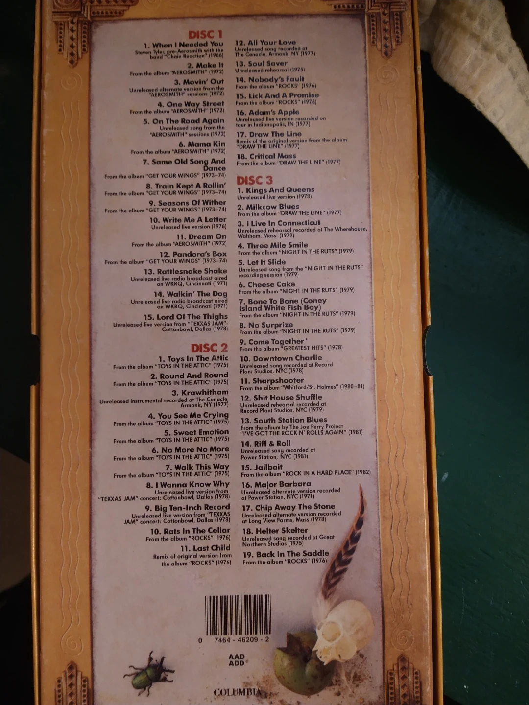 Selling Aerosmith's Pandora's Box CD set. It includes multiple discs with unreleased songs and live versions. The box itself has a unique design. A must-have for any Aerosmith fan!