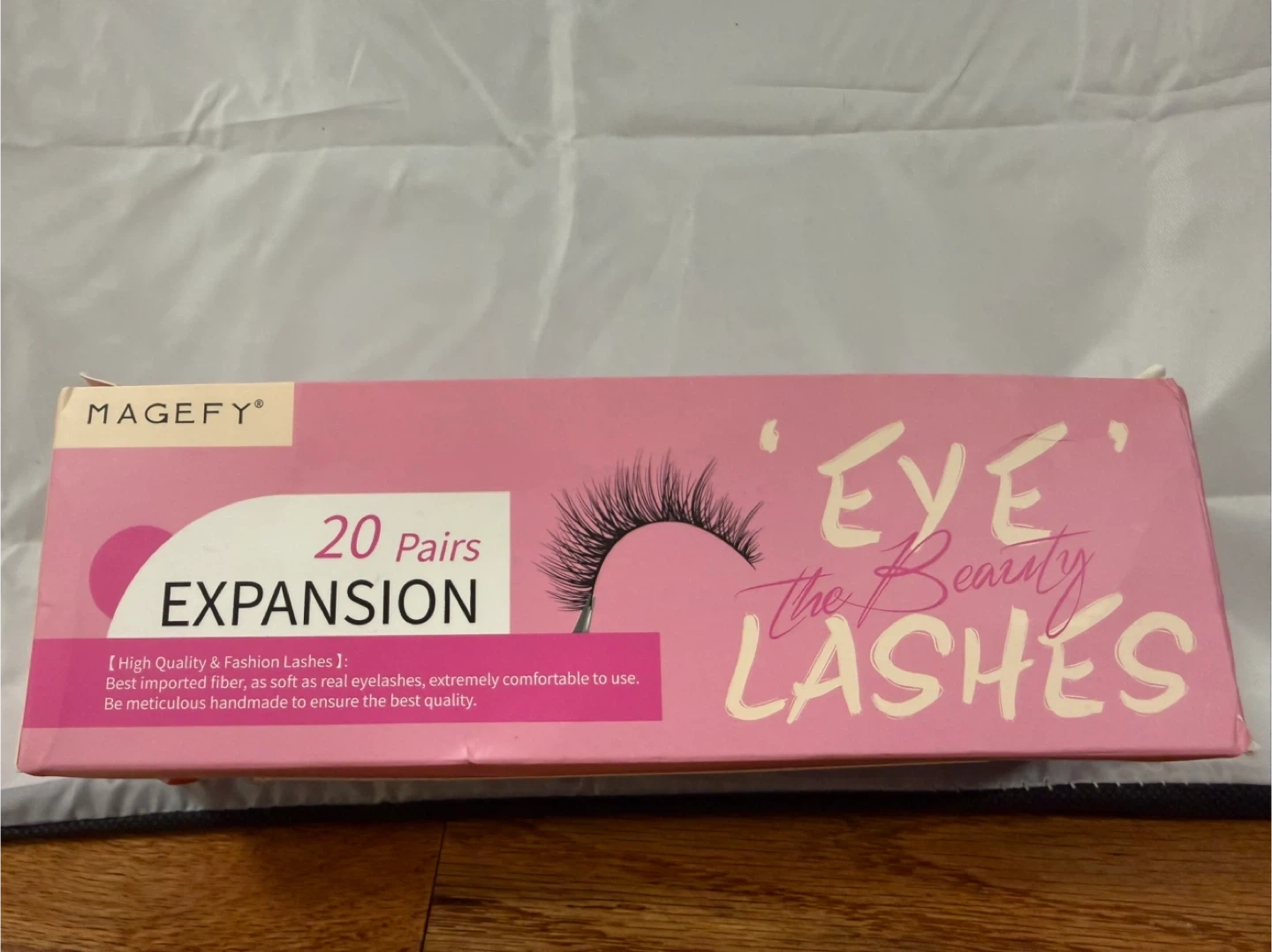 This is a box of Magefy 'Eye' the Beauty Lashes. It includes 20 pairs of expansion lashes. These lashes are made from best imported fiber, soft as real eyelashes, and extremely comfortable to use. They're meticulously handmade to ensure the best quality.
