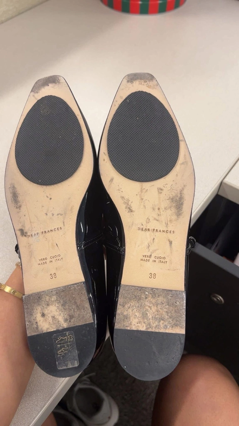 Selling a pair of Dear Frances Mary Jane flats in black patent leather. They are a size 38. Originally bought for $570. Please take a close look at the photos to assess the condition!