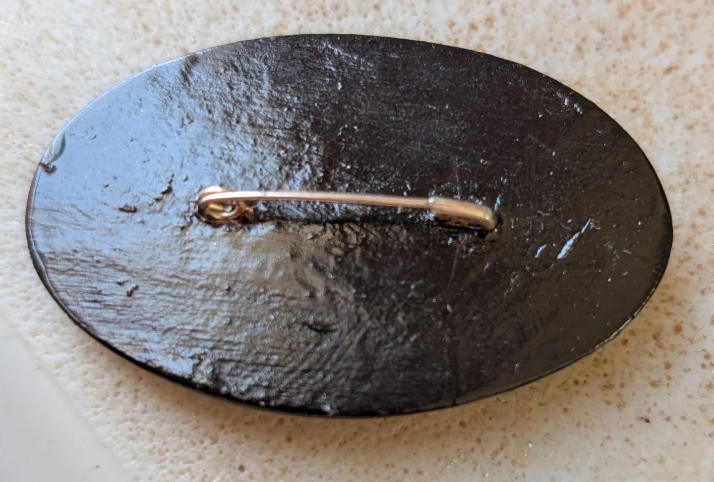 Hand-Painted Oval Brooch Pin with Red Berries and Leaves
