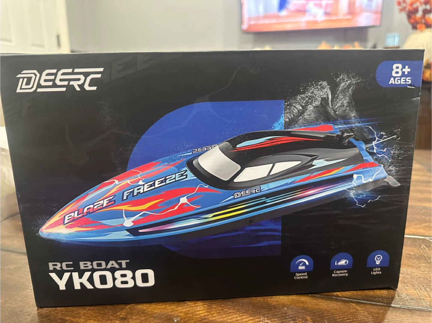 Selling a brand new DEERC YK080 RC Boat! It's still in the box and ready for some fun on the water. Key features: - Suitable for ages 8+ - Has speed control - Features capsize recovery - Includes LED lights Get ready for some high-speed adventures!