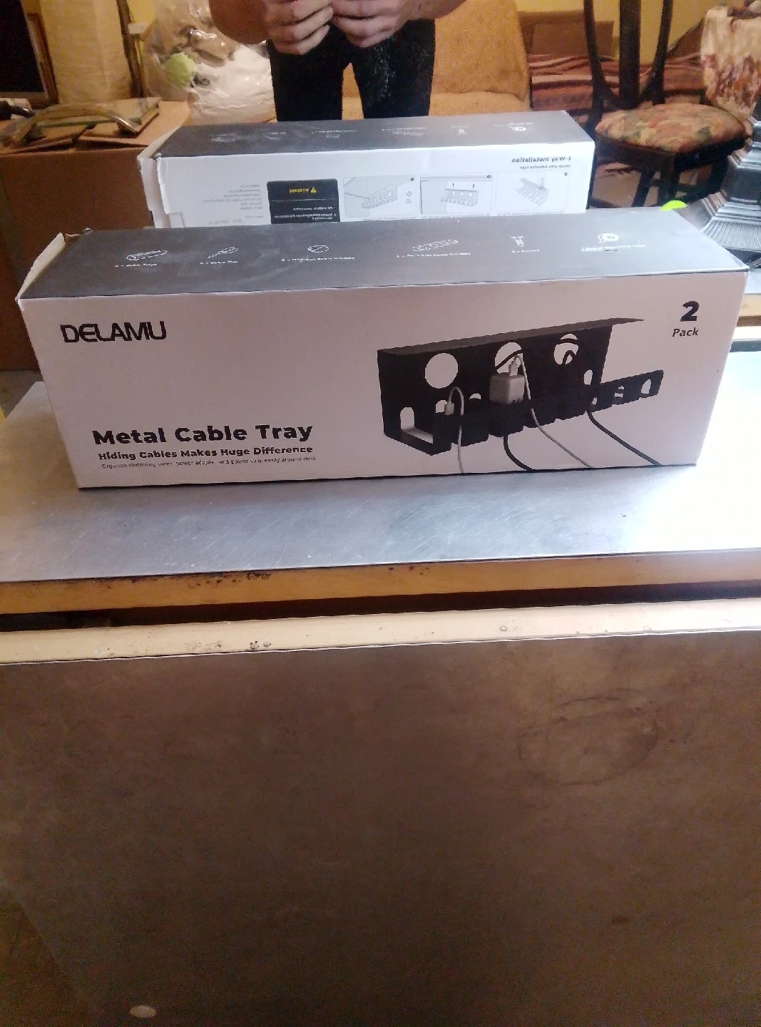 85Selling a DELAMU Metal Cable Tray, comes as a 2 pack! It helps with hiding cables and making a huge difference in cable management. Includes cable trays, cable ties, joint cable holders, four size cable holders, screws, and mounting tape