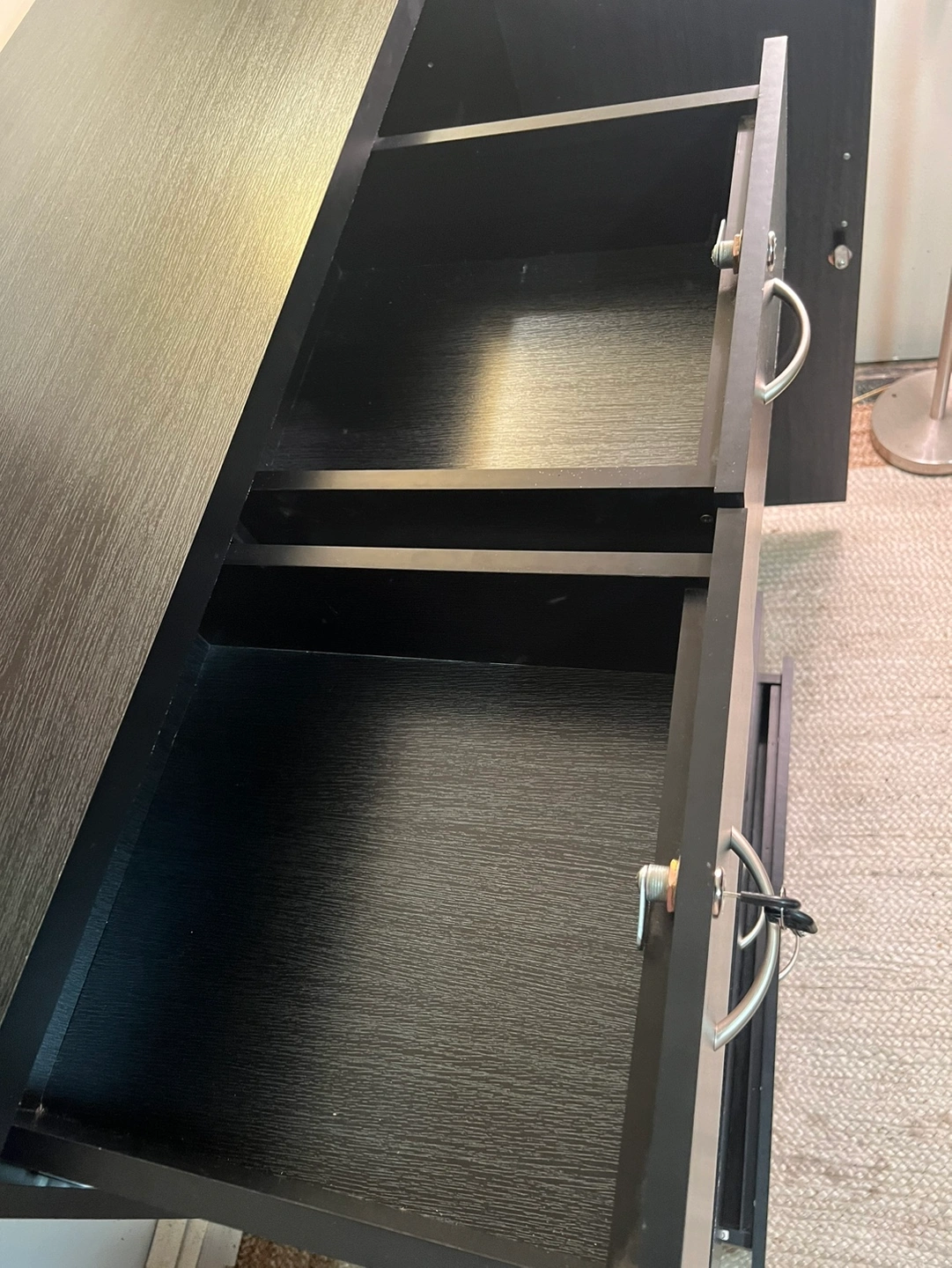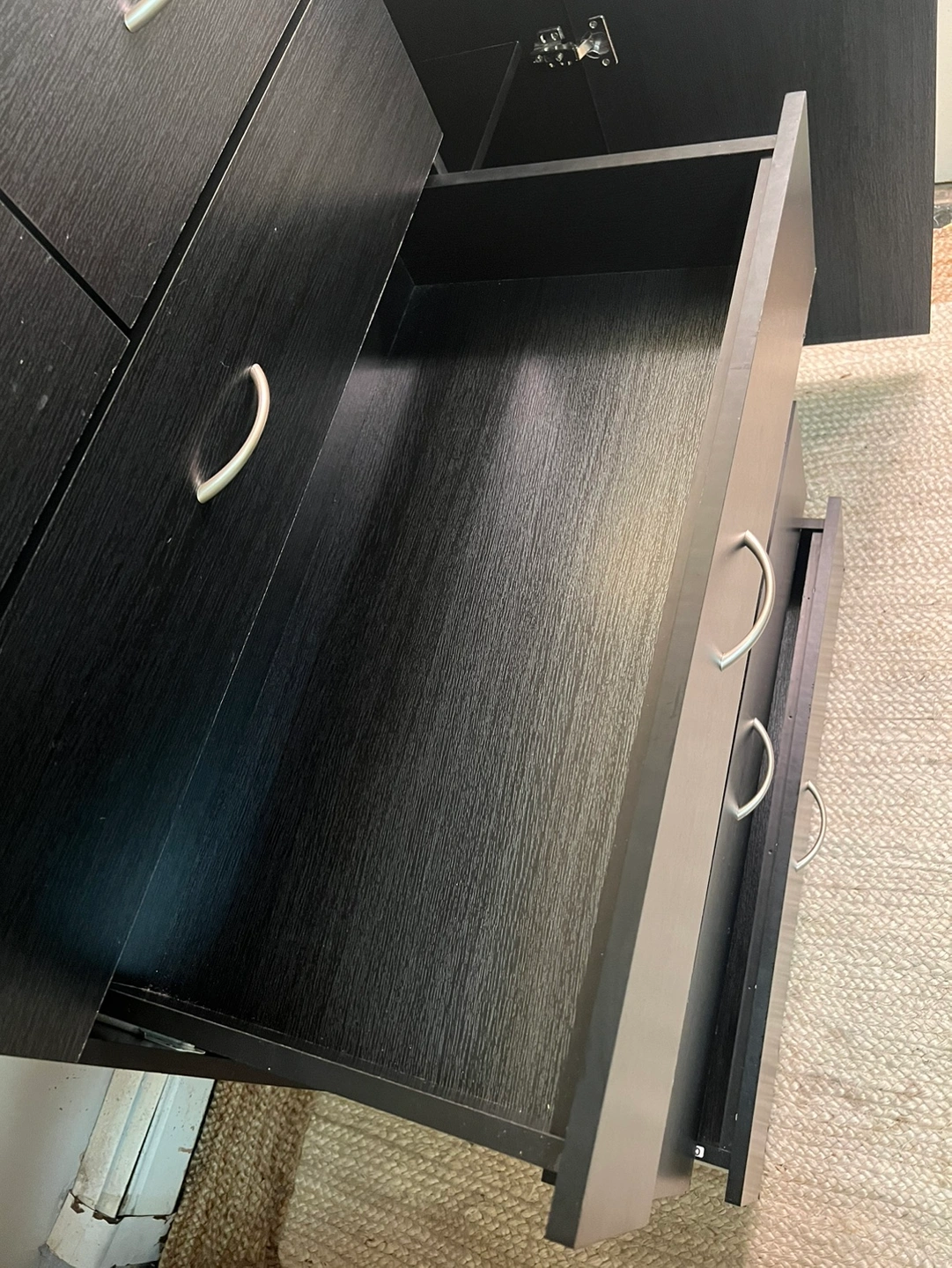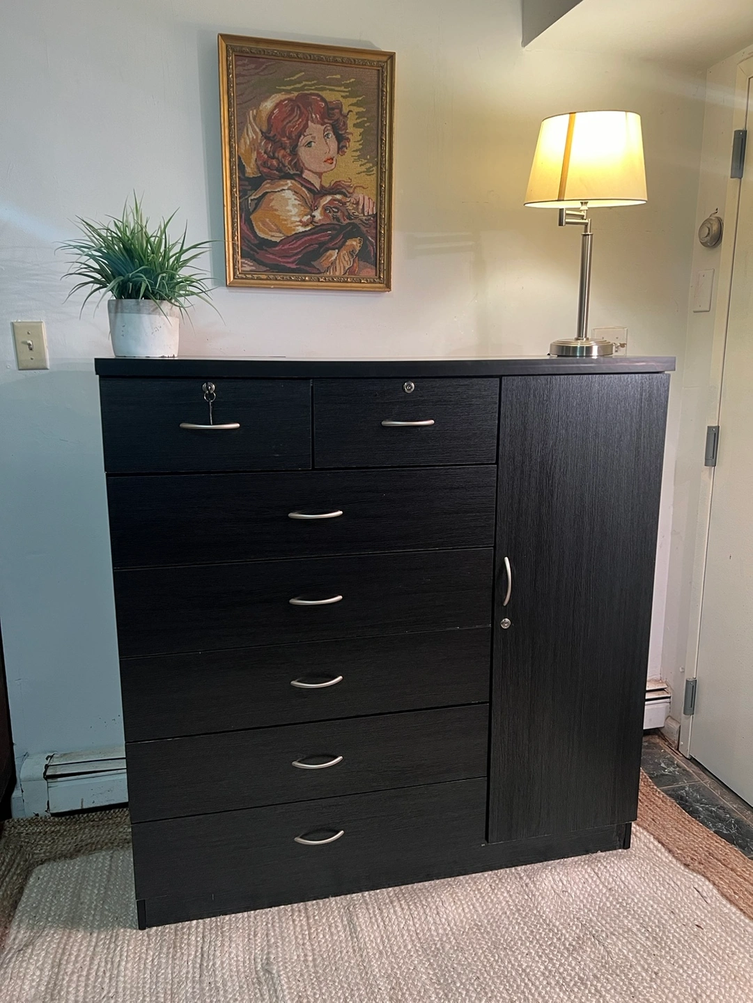 415Functional dresser with seven drawers and cabinet that has four shelves. All drawers open and close smoothly. There is some cosmetic wear from normal usage but noting major. The top two drawers lock key works but the cabinet door lock doesn’t. You may replace if you wish. They are few bucks from Amazon. Measurement - 8” x 47.25” x 48.5” (LxWxH) Venmo, Zelle, CashApp, PayPal or cash are accepted for payment. Delivery is available for extra fee. Fee varies depending on your location.