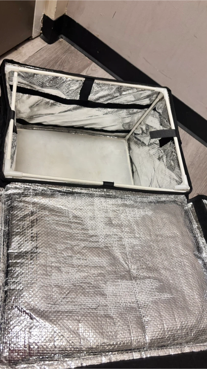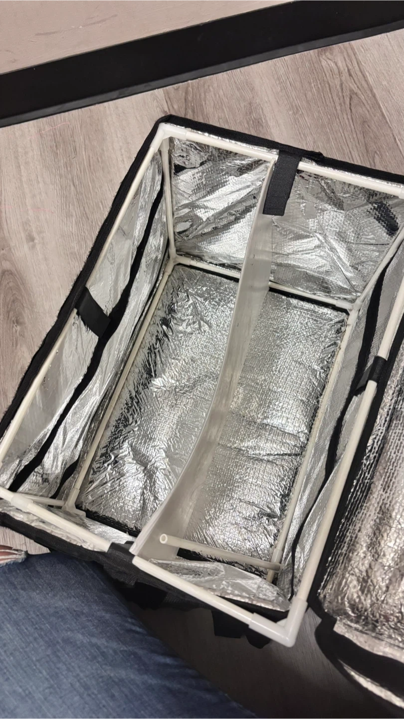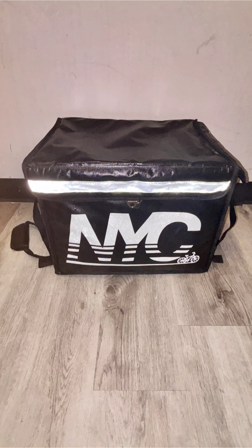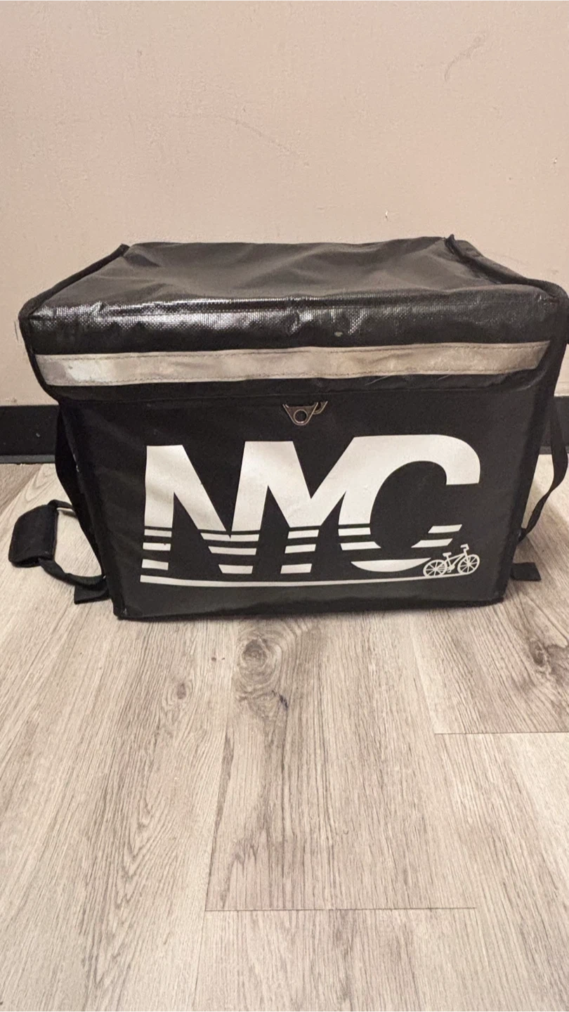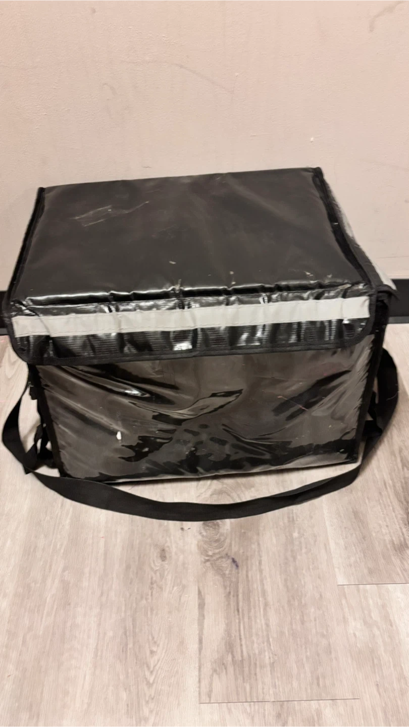 Selling a used delivery backpack. It's an insulated food warmer bag, perfect for keeping food hot or cold on the go. It has some signs of use, but it's still in good working condition.