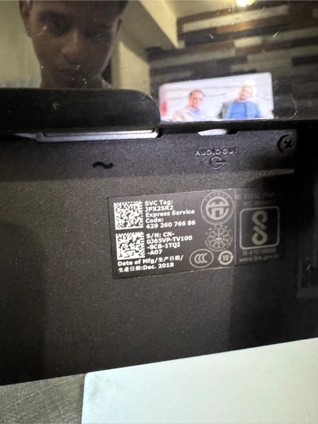 Selling a Dell monitor in good condition. The model number is J9PX2SR2. Date of manufacture is December 2018