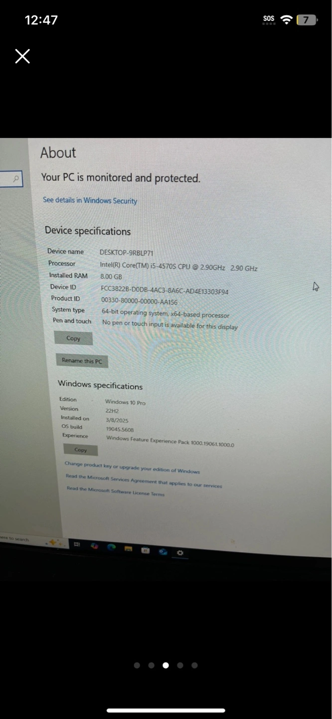 Dell desktop computer. Includes wired keyboard and mouse. Windows 10 Pro. Intel Core i5 processor. 8 GB RAM, and 500 GB. (Negotiable)