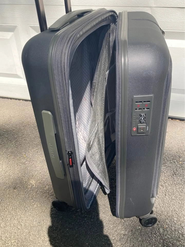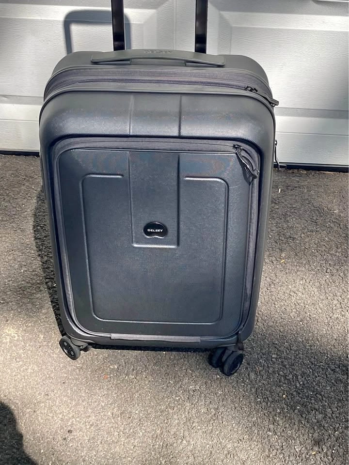 Genuine Delsey Paris hardshell carry-on suitcase. Durable, lightweight, and TSA-approved lock built in. ✅ 4-wheel spinner design for easy rolling ✅ TSA lock (no key required – buyer sets their own combo) ✅ Expandable zipper for extra space ✅ Clean interior, excellent condition ✅ Fits most airline overhead bins Only lightly used — just normal scuffs from travel, interior is very clean.