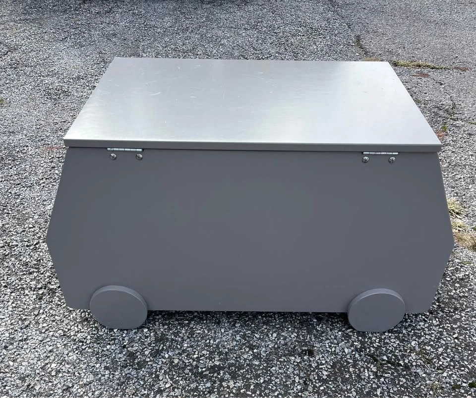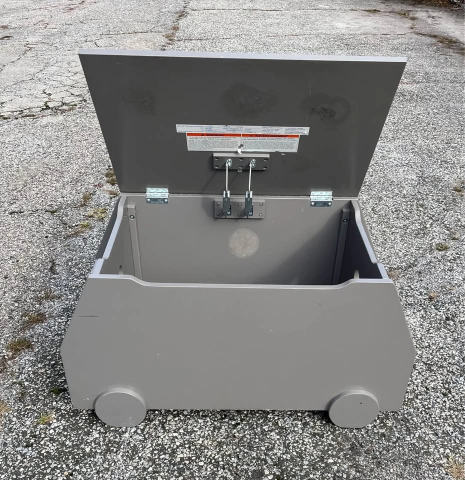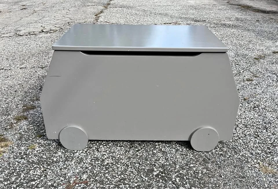 10This is the Delta Children Metro Toy Box in Classic Grey. It is a kid-friendly storage solution with a slow-closing lid and safety hinges to prevent it from closing too quickly. The toy box is made of sturdy wood construction with rounded corners and smooth edges. It has dual book/magazine racks on both sides. This chests very solid and closes super slow. It may need a little help closing it in a rush. There are some minor blemishes (expected from being used as a kids toy chest) but not anything really that noticeable. There are more noticeable blemishes inside from stickers being removed. See my photos and video. The dimensions are approximately 33W x 18H x 18D. Cash only Pickup in Sheepshead Bay Brooklyn