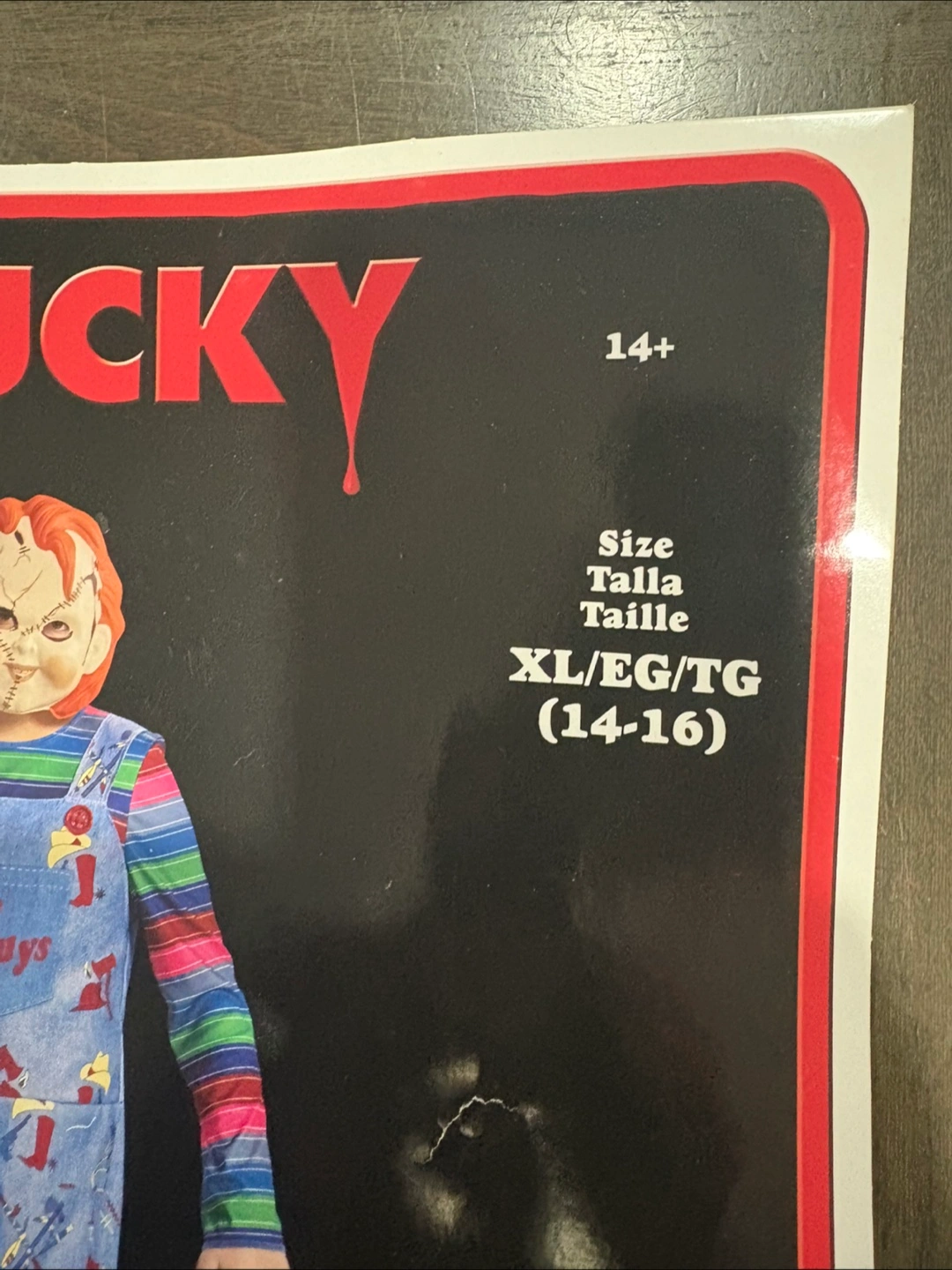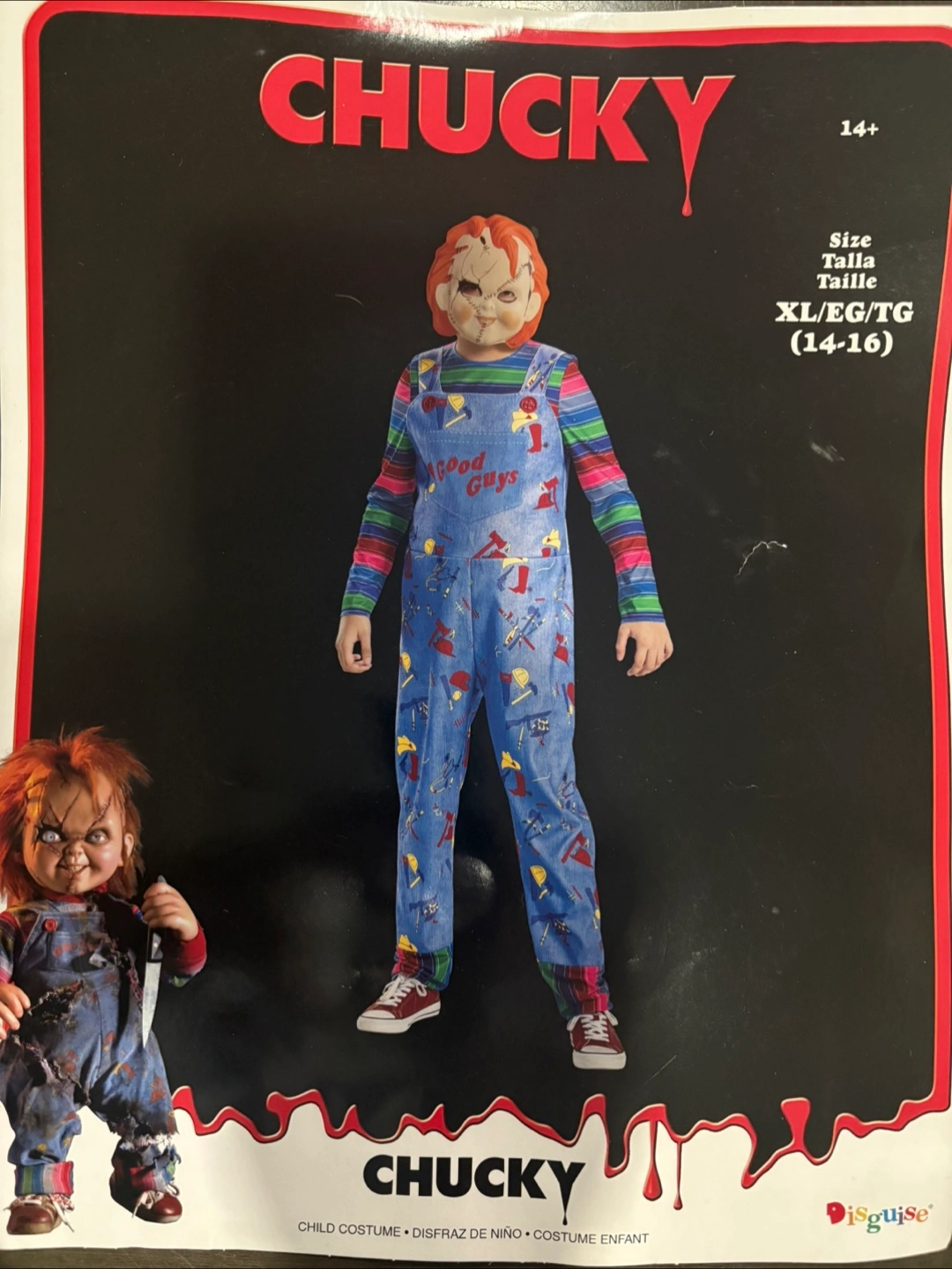 33Deluxe Chucky Kids Halloween Costume! Brand new. 14+ Size. (14-16). “Knife. Included”. No Mask. No Mask …. Included