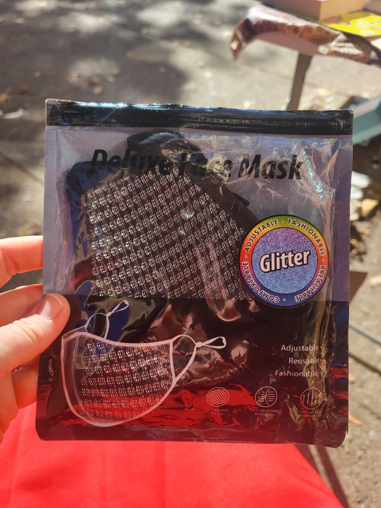 63Selling a Deluxe Face Mask that's adjustable, reusable, and fashionable! It features glitter and is made with sustainable textile and easy breathing mesh shell for a comfortable adjustable fit