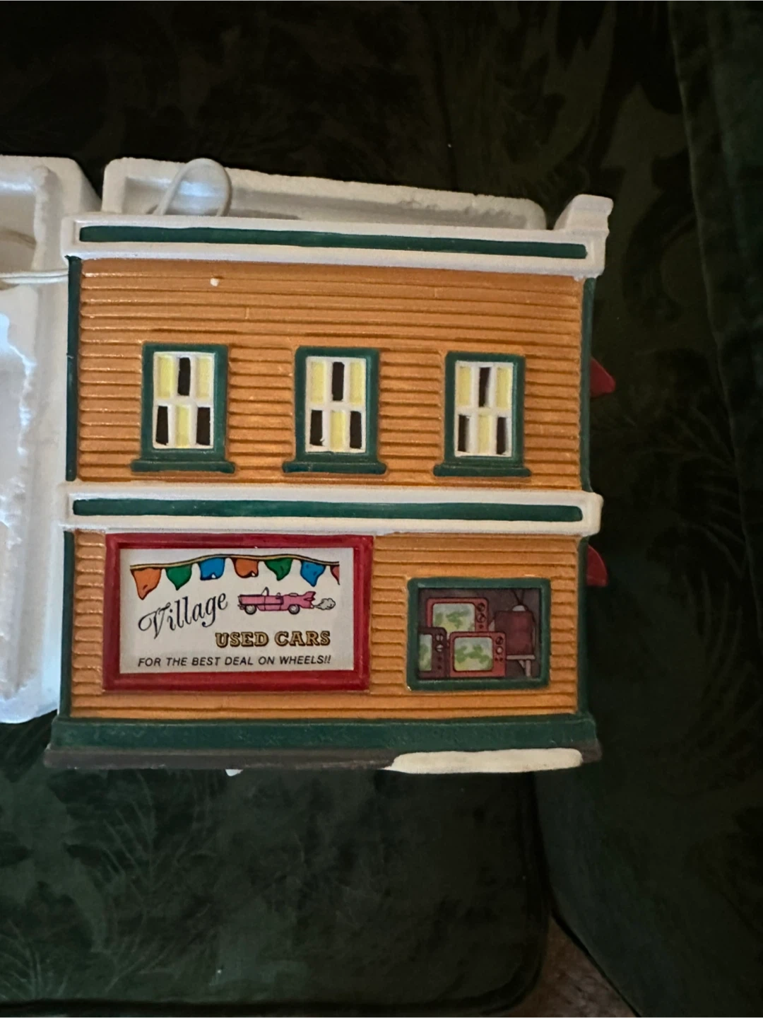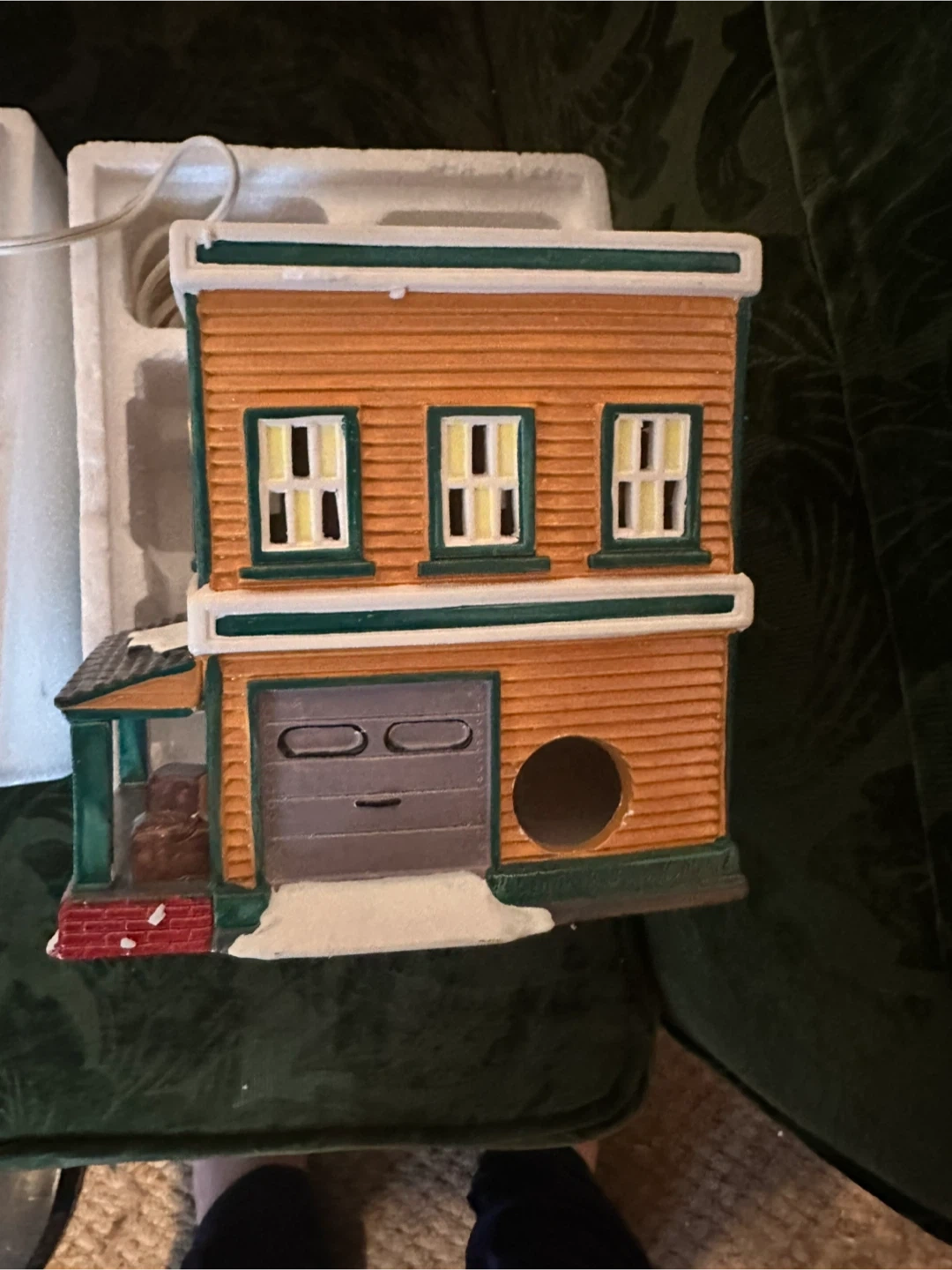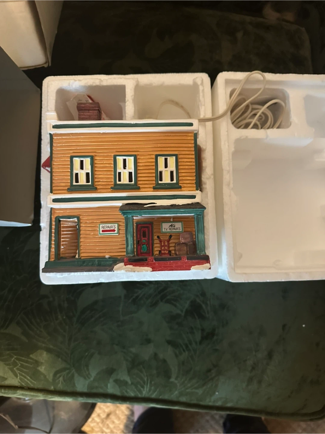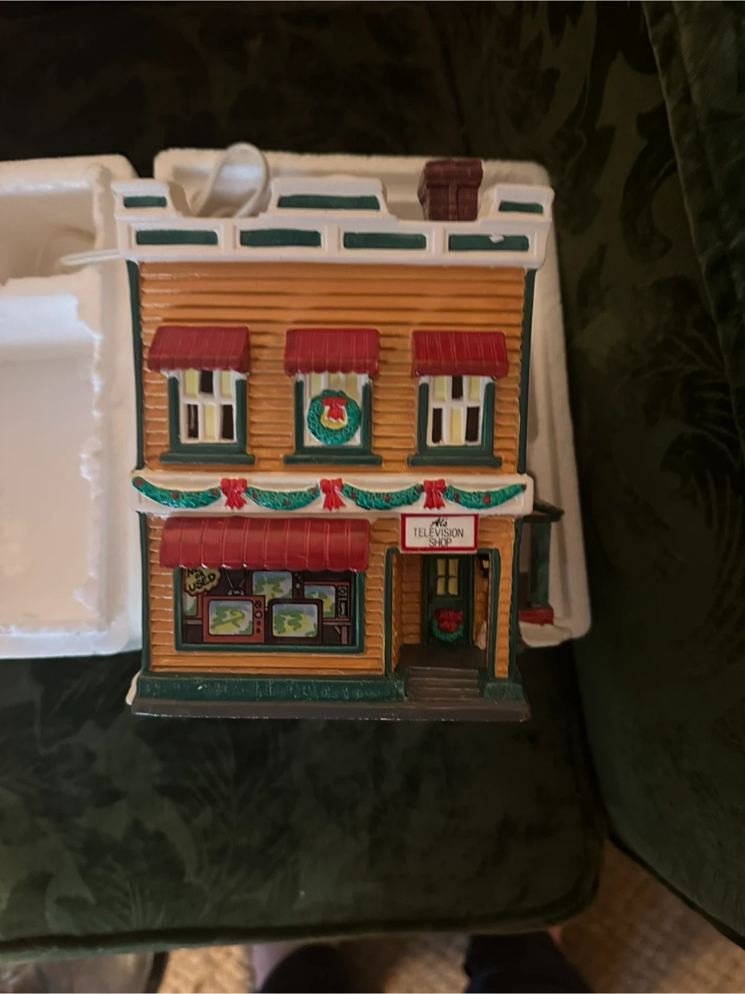 60Selling a Department 56 The Original Snow Village piece, "Al's TV Shop"! This charming collectible building is part of the Snow Village series and comes with its original box. It's a delightful addition to any holiday village display or Department 56 collection
