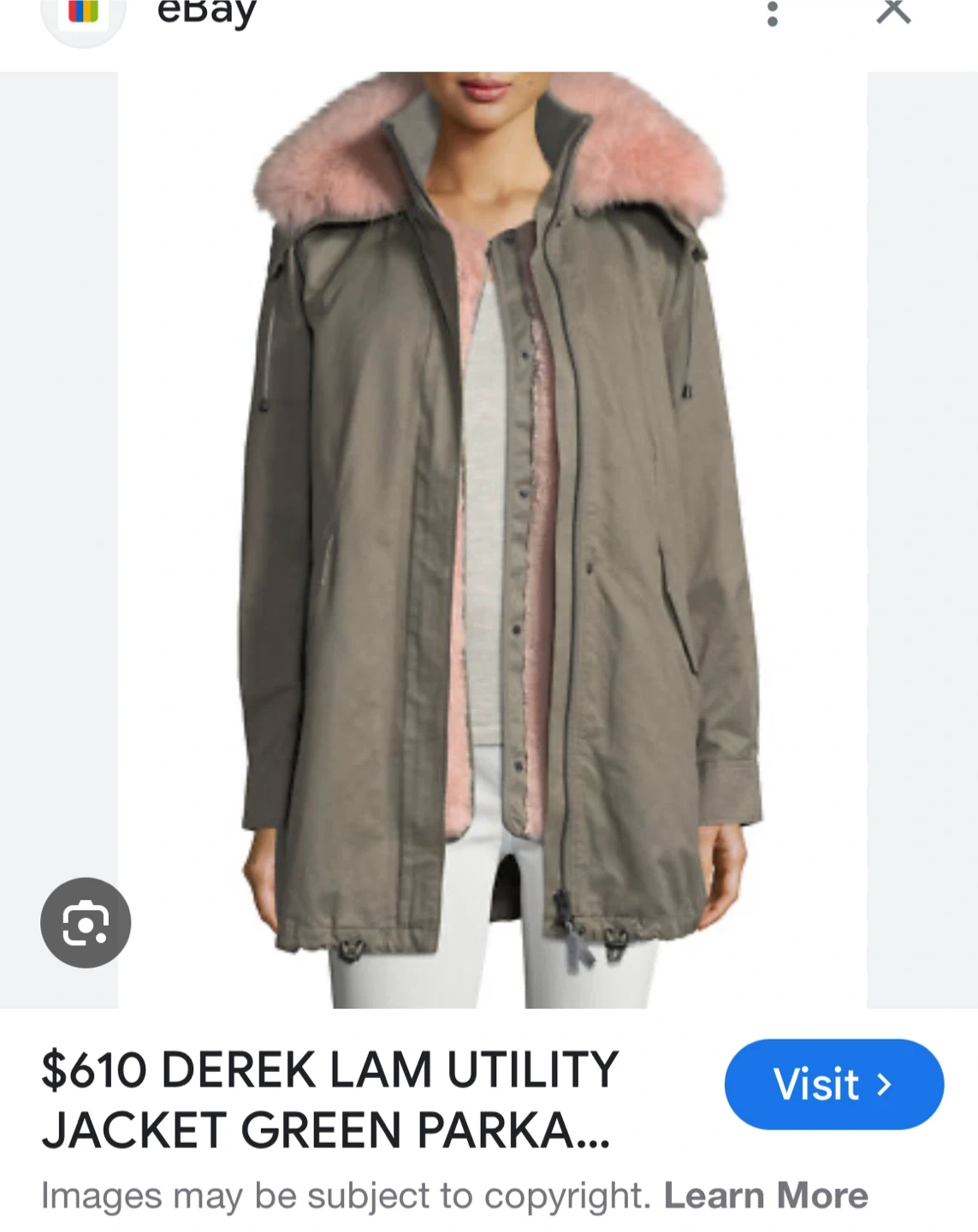 10Selling a Derek Lam utility jacket in a green parka style! It features a unique design and a comfortable fit. Perfect for adding a stylish touch to your wardrobe Size XL Removable fox fur collar Removable faux fur vest Amazing jacket $610 original price