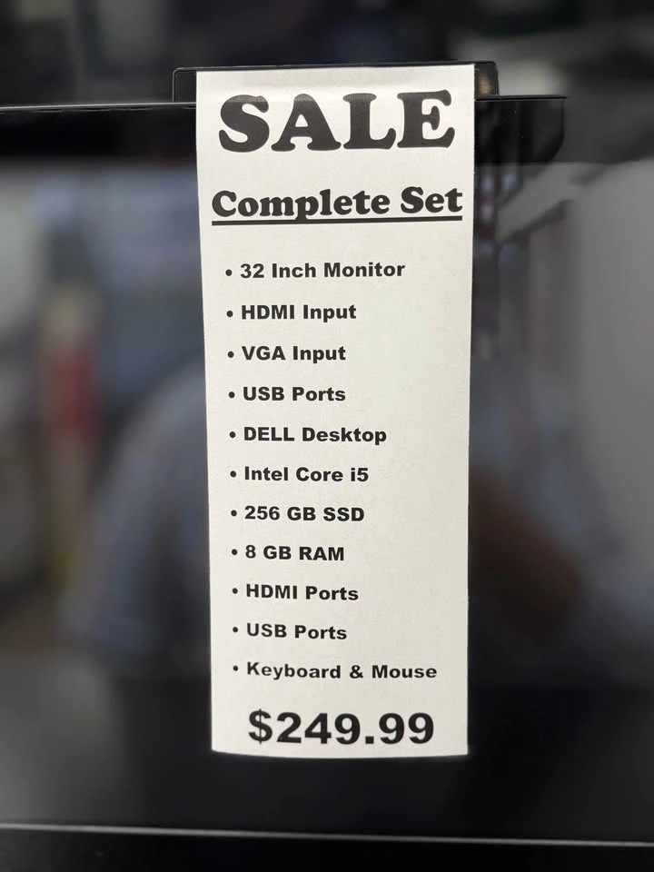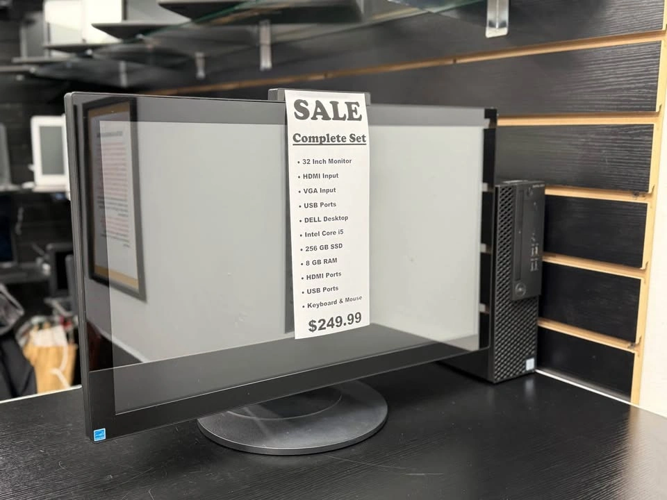 10Complete Set 32 Inch Monitor with HDMI, VGA, & USB Inputs Dell Desktop with i5 Processor, 256GB SSD, 8GB Ram, Keyboard & Mouse Included
