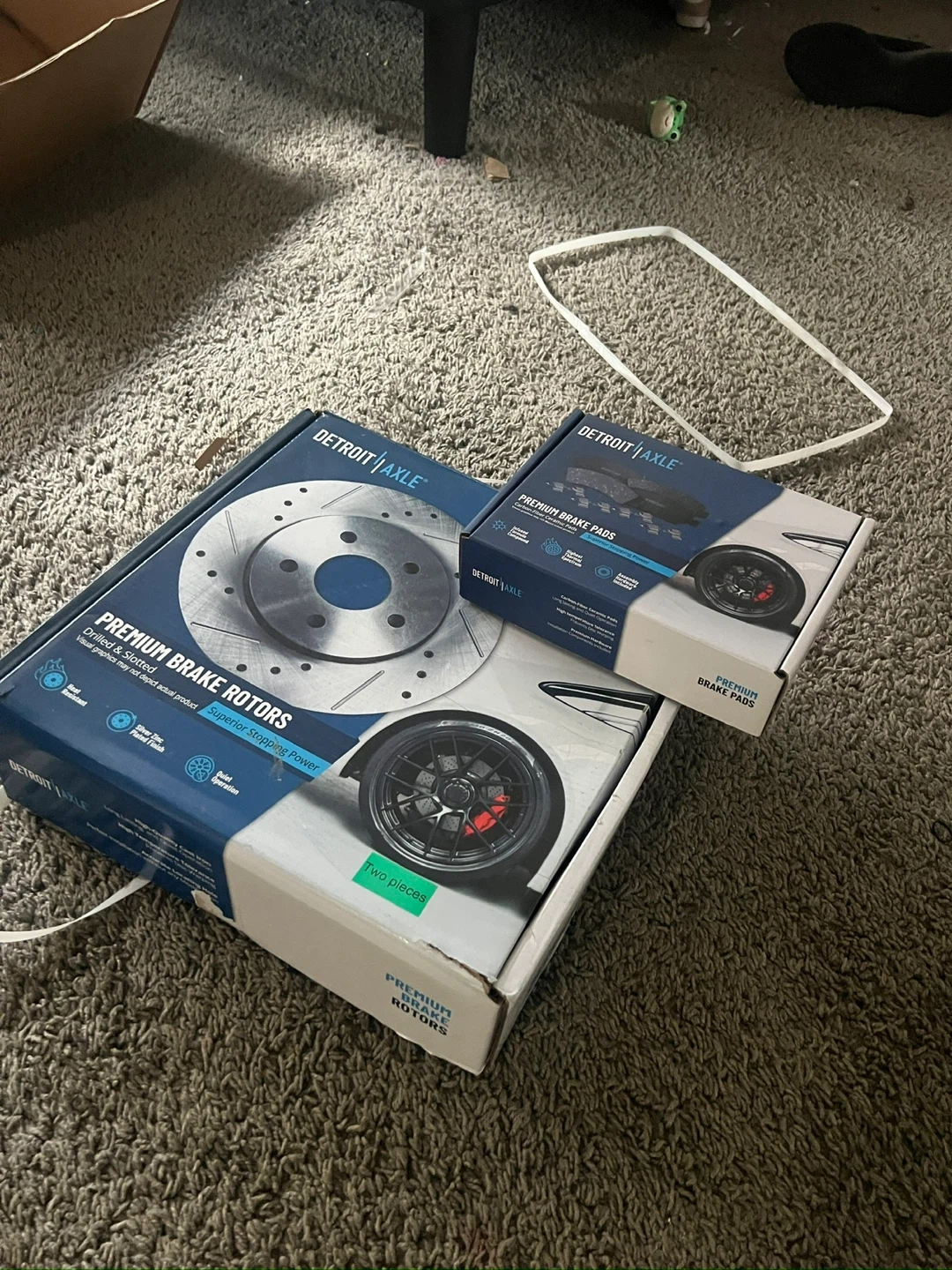 65Selling a set of Detroit Axle premium brake rotors and pads. The rotors are drilled and slotted for superior stopping power. They also feature a silver zinc plated finish for heat resistance and quiet operation. The brake pads are carbon-fiber ceramic and include assembly hardware