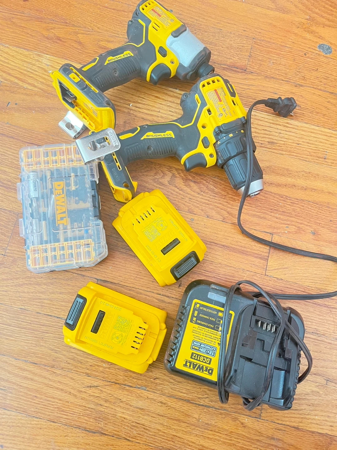15Selling a DEWALT brushless drill and driver combo kit! Includes the DCD793 drill, a DCB112 charger, and two batteries. The drill and driver are both brushless for increased efficiency and longer runtime. Also included is a set of drill bits to get you started on your projects right away